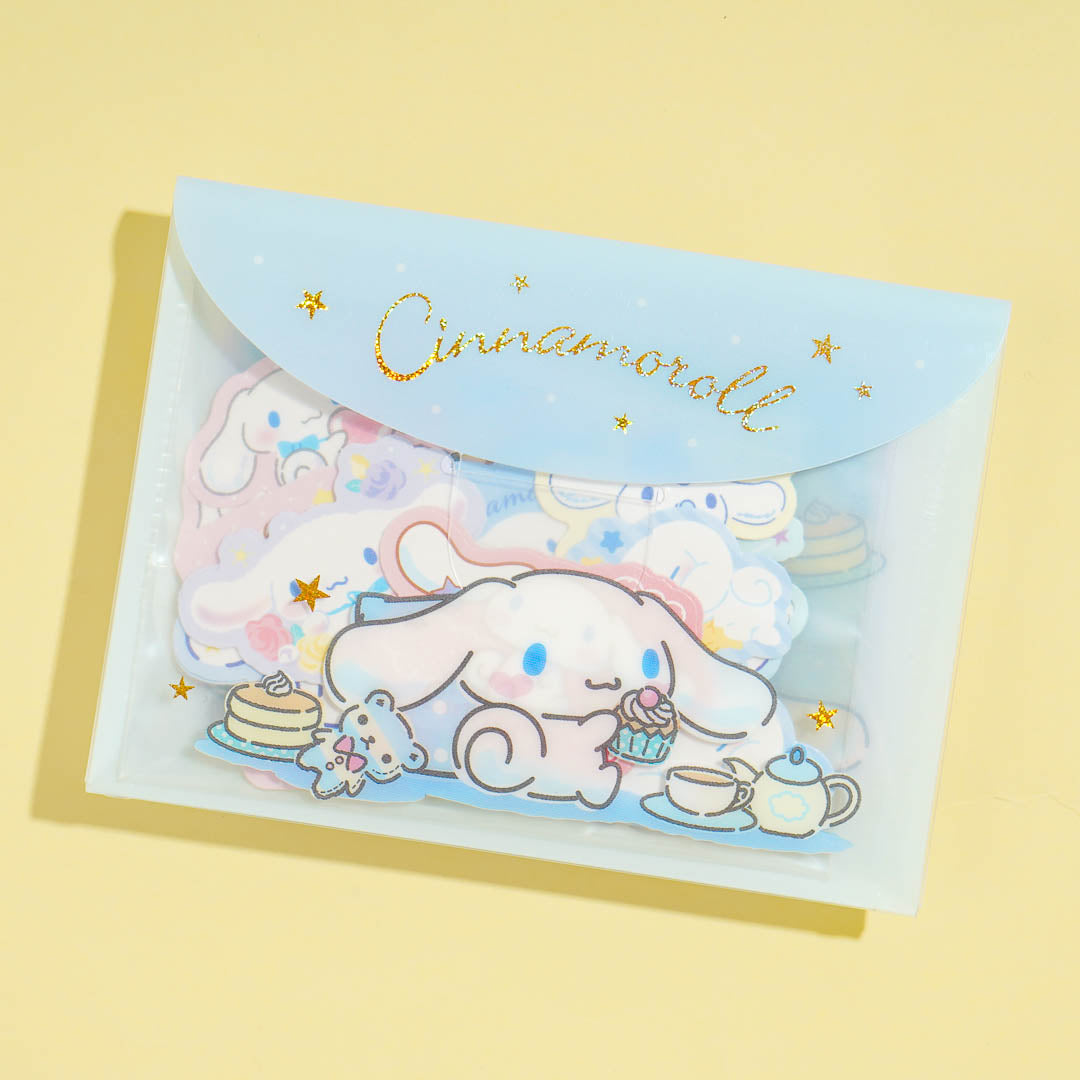 This kawaii sticker set is the perfect gift for your Sanrio-loving buddy! It features cute prints of Cinnamoroll enjoying tea time with desserts. The stickers come in a kawaii transparent case.