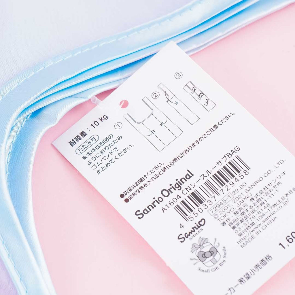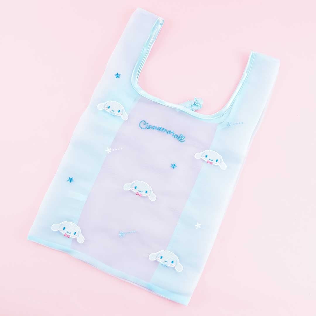 Don't forget to bring this super cute translucent eco bag when you go to the groceries! It features embroidery of Cinnamoroll. This eco bag has an elastic band so its easy to store.