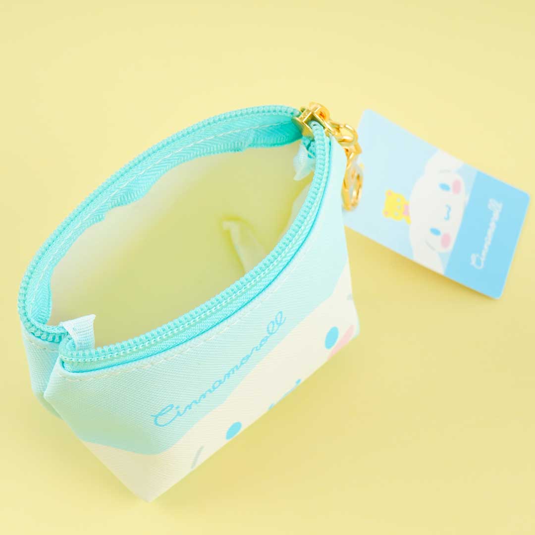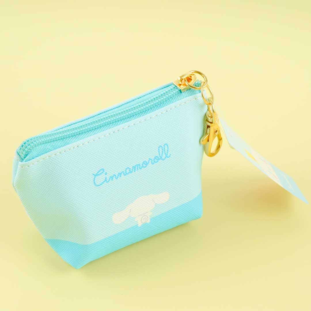 This super cute pouch has a unique triangular base and a kawaii print of Cinnamoroll, the well-loved Sanrio dog! Use this handy case to keep loose change and other important small items.