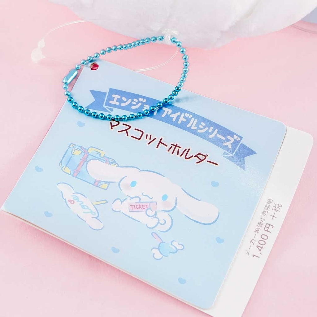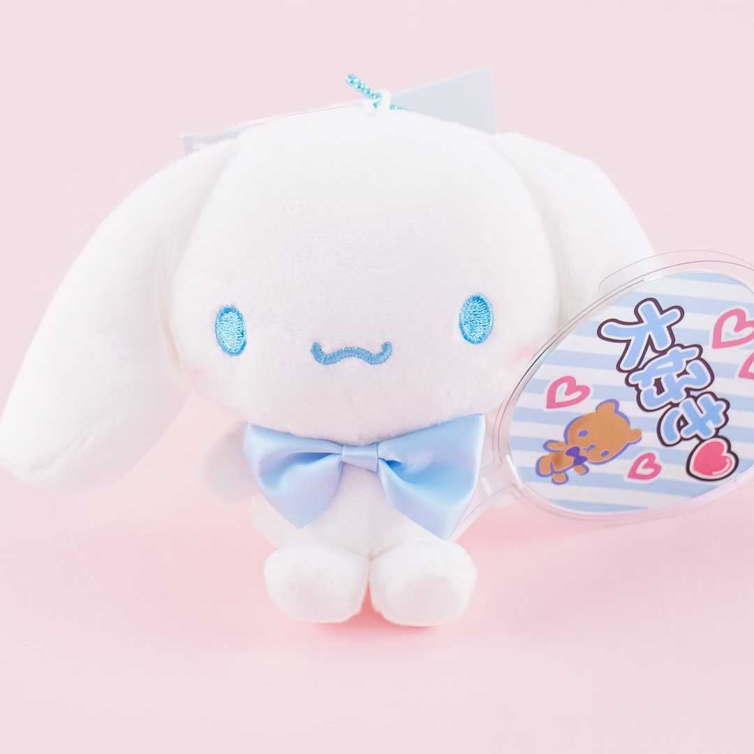 This super cute medium-sized Cinnamoroll plushie is holding up an uchiwa or traditional Japanese fan. You can replace the fan with other things like your favorite pictures! It also comes with a detachable ball chain so you can take it with you on your next adventure!
