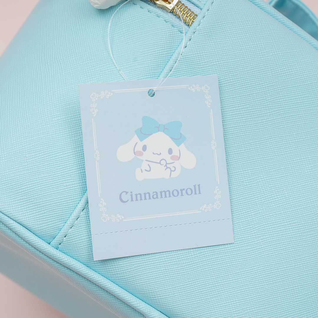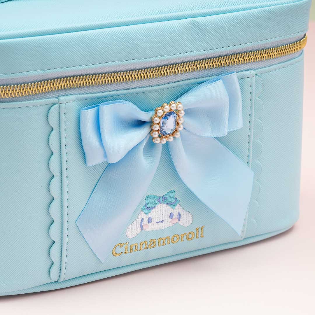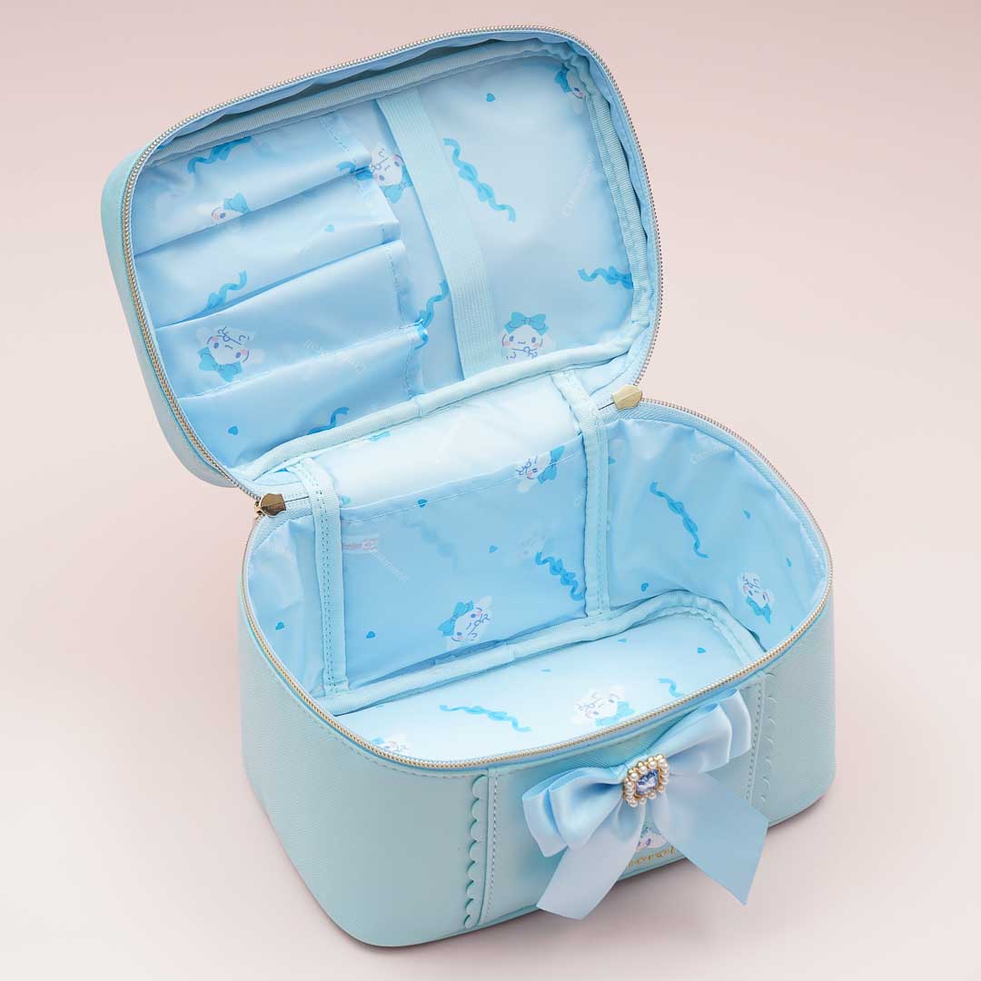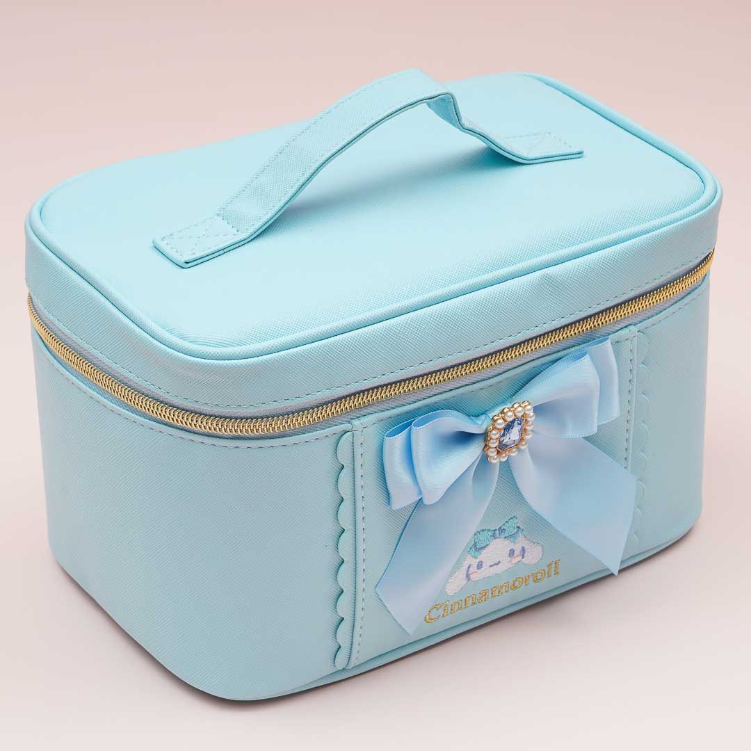 Use this cute vanity pouch to organize your makeup like your lipstick, mascara, and compact powder. This pouch showcases a print of Cinnamoroll and a lovely bejeweled ribbon decor! It has a big main compartment and multiple brush slots for you to use.