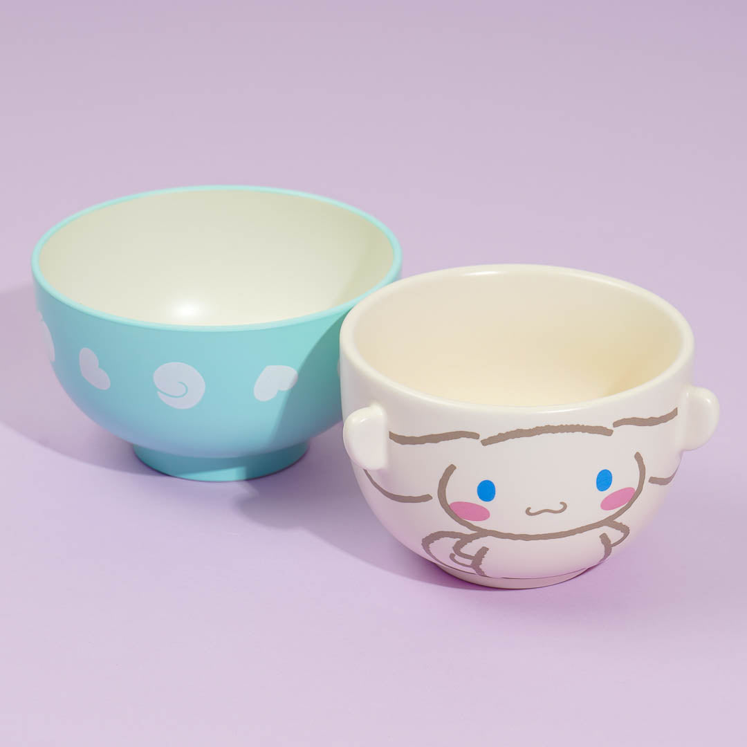 Eat your favorite warm soup and rice on this kawaii bowl set! The ceramic rice bowl features a watercolor-style illustration of Cinnamoroll with protruding ears, while the plastic soup bowl is decorated with prints of hearts and cinnamon rolls. You can stack the bowls after eating to say thanks for the meal!