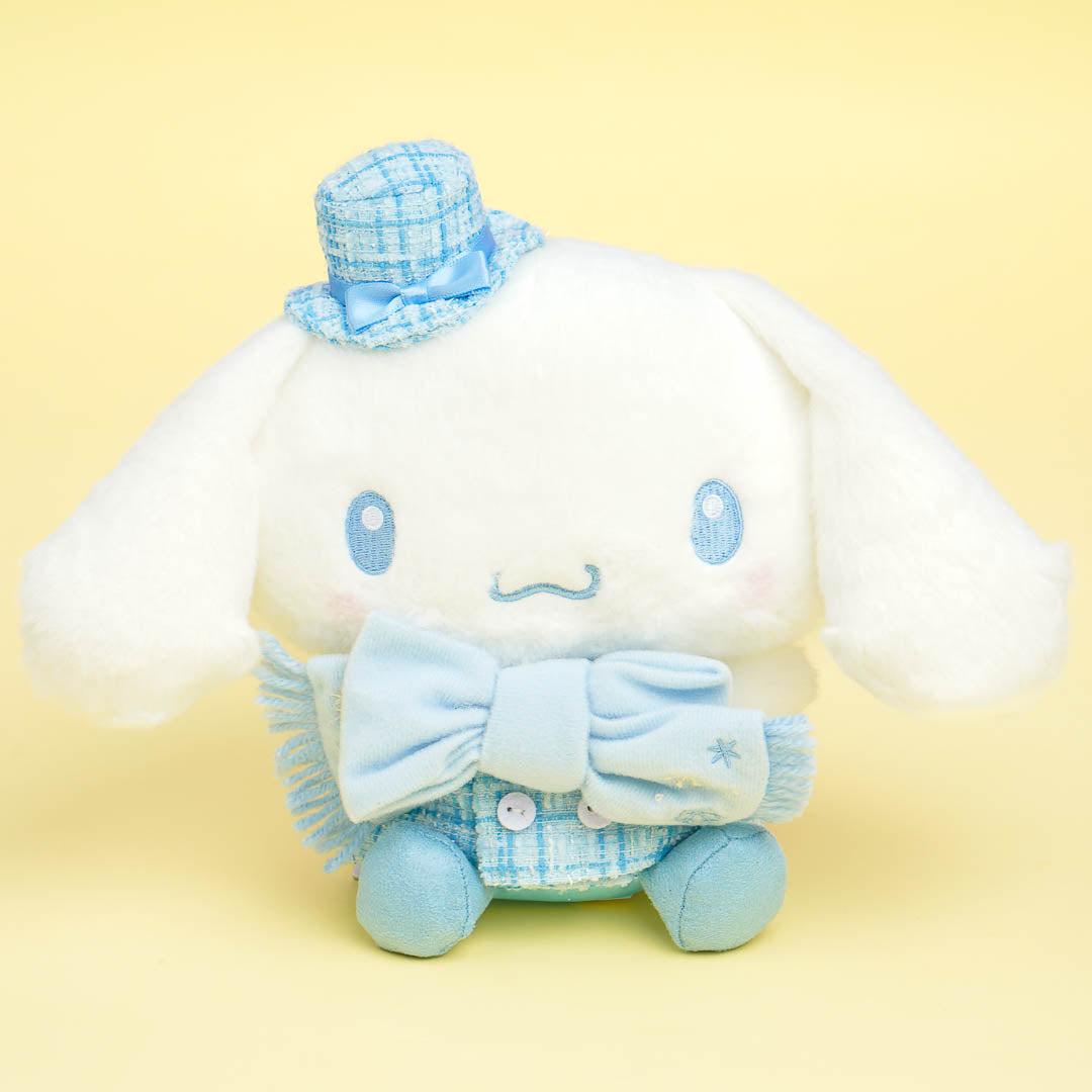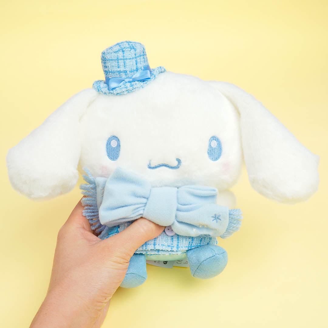 Snuggle with this medium-sized Cinnamoroll plushie during cold days! It's wearing a cute winter outfit with a matching scarf and hat. This design comes from the Sanrio Winter Outfit series.
