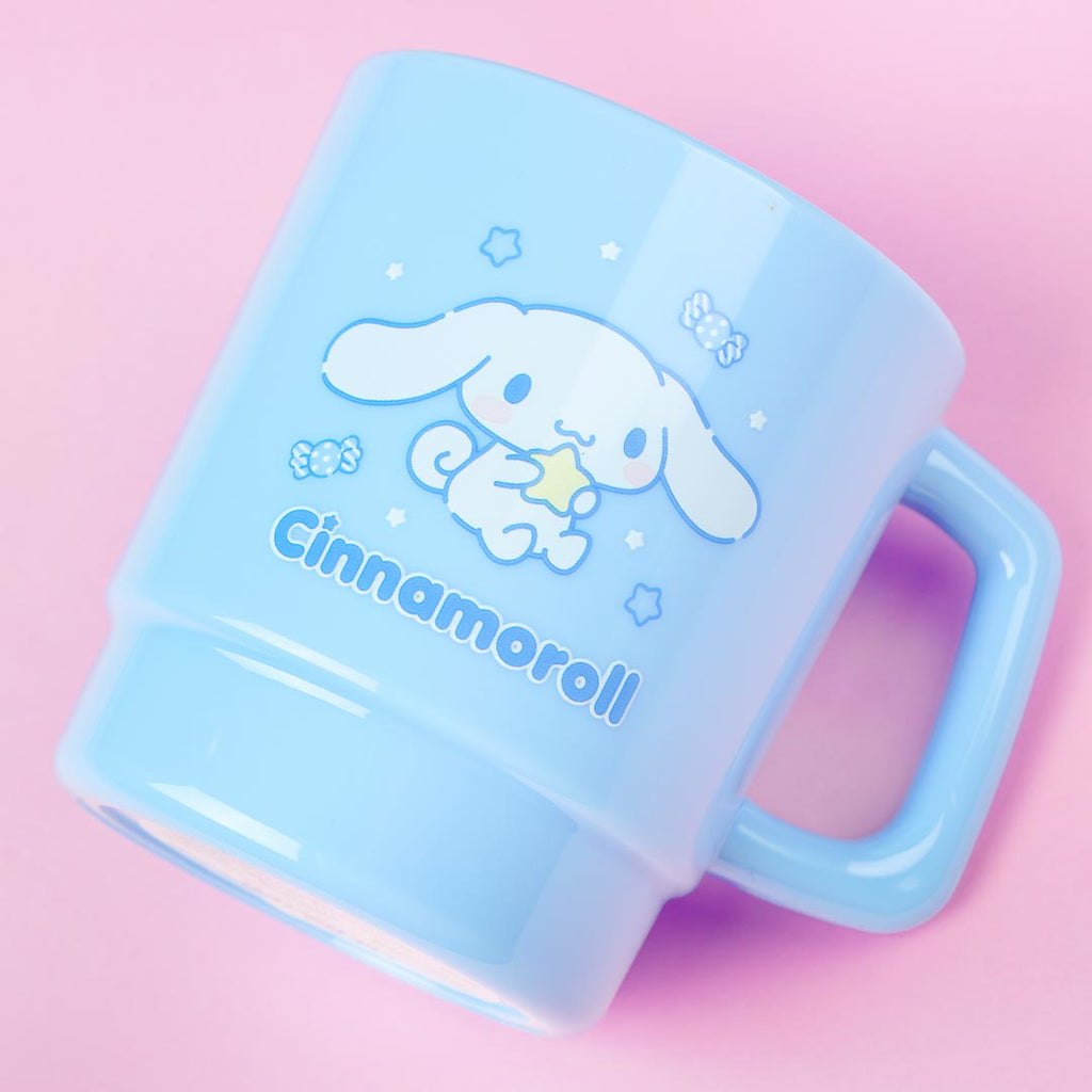 Enjoy your hot soup or cold drink using this cute sky-blue mug! It has a print of Cinnamoroll hugging and wishing on a star! This kawaii cup can also be stacked on top of similar-shaped mugs.