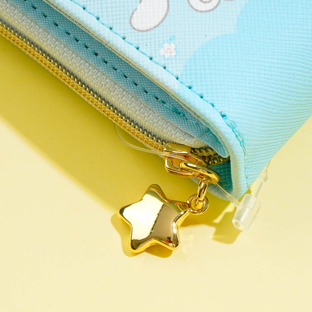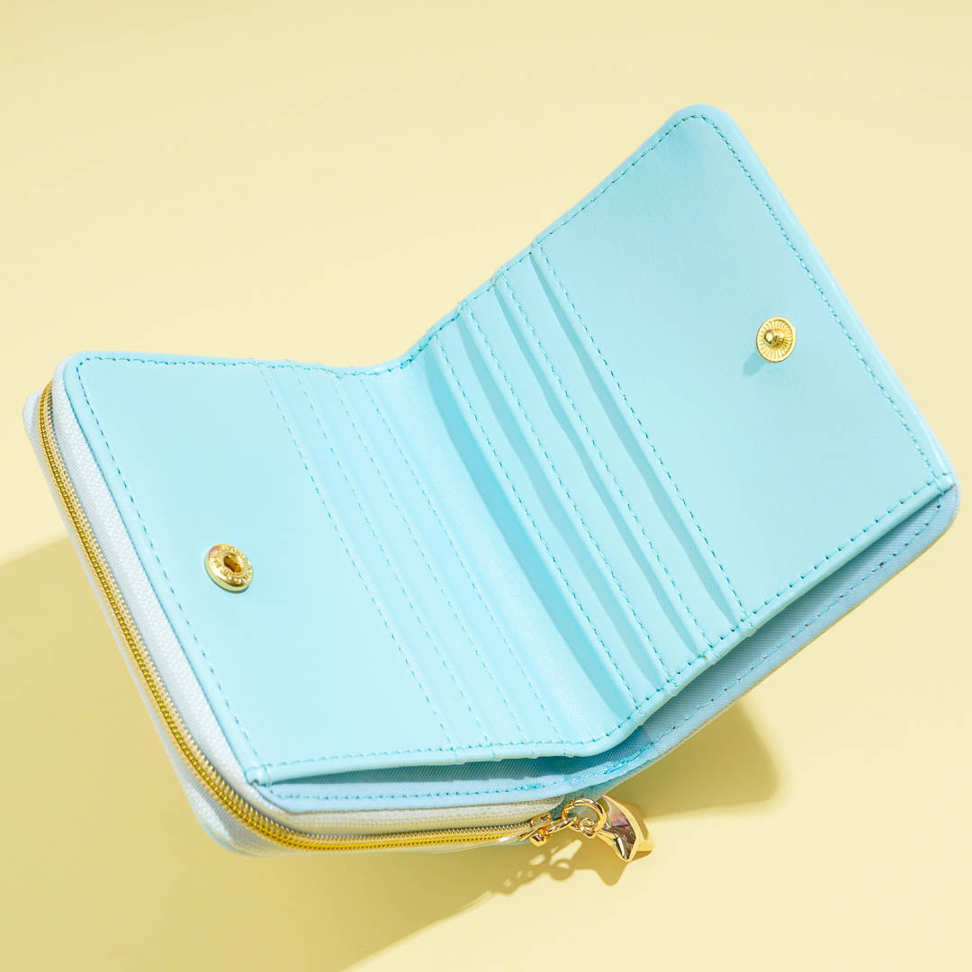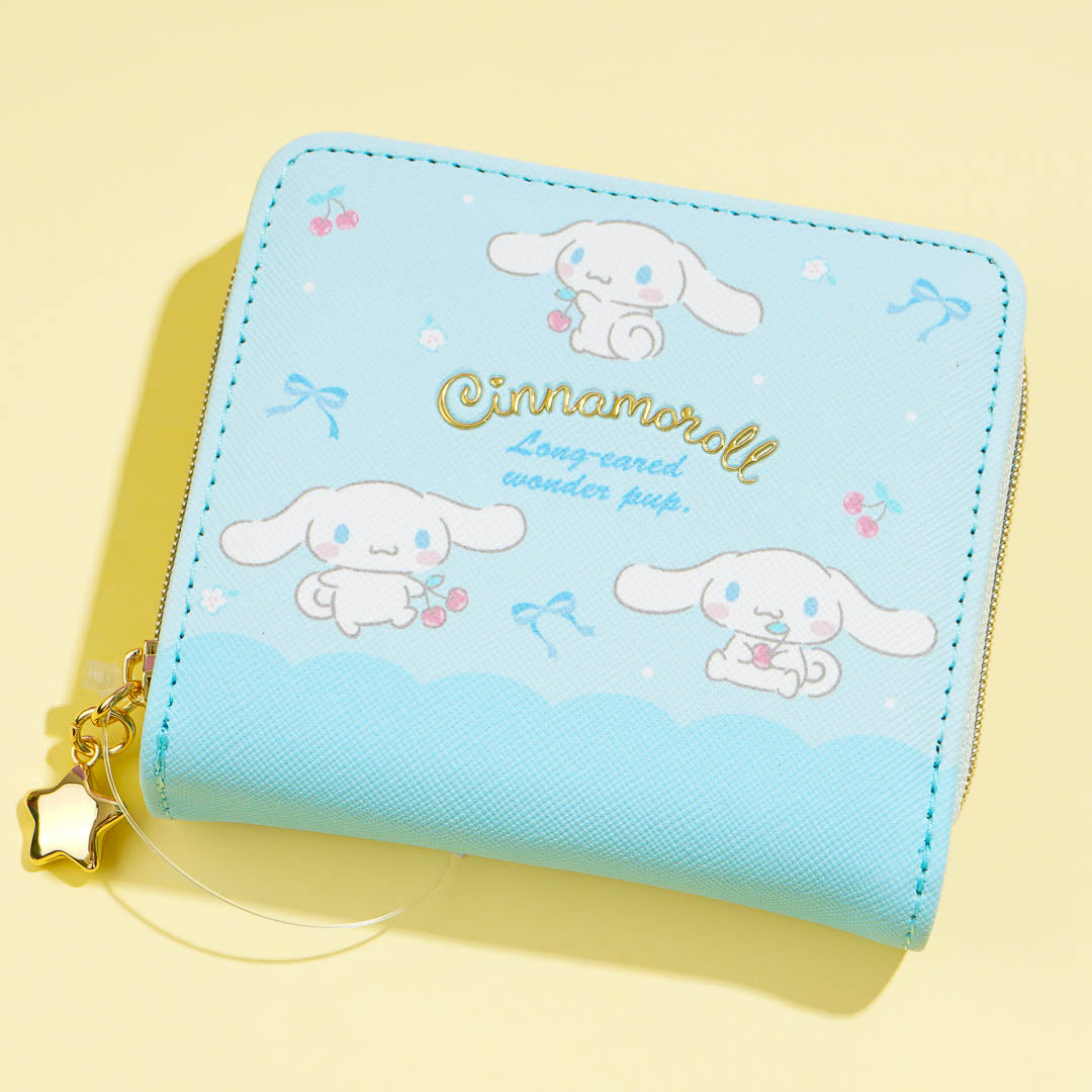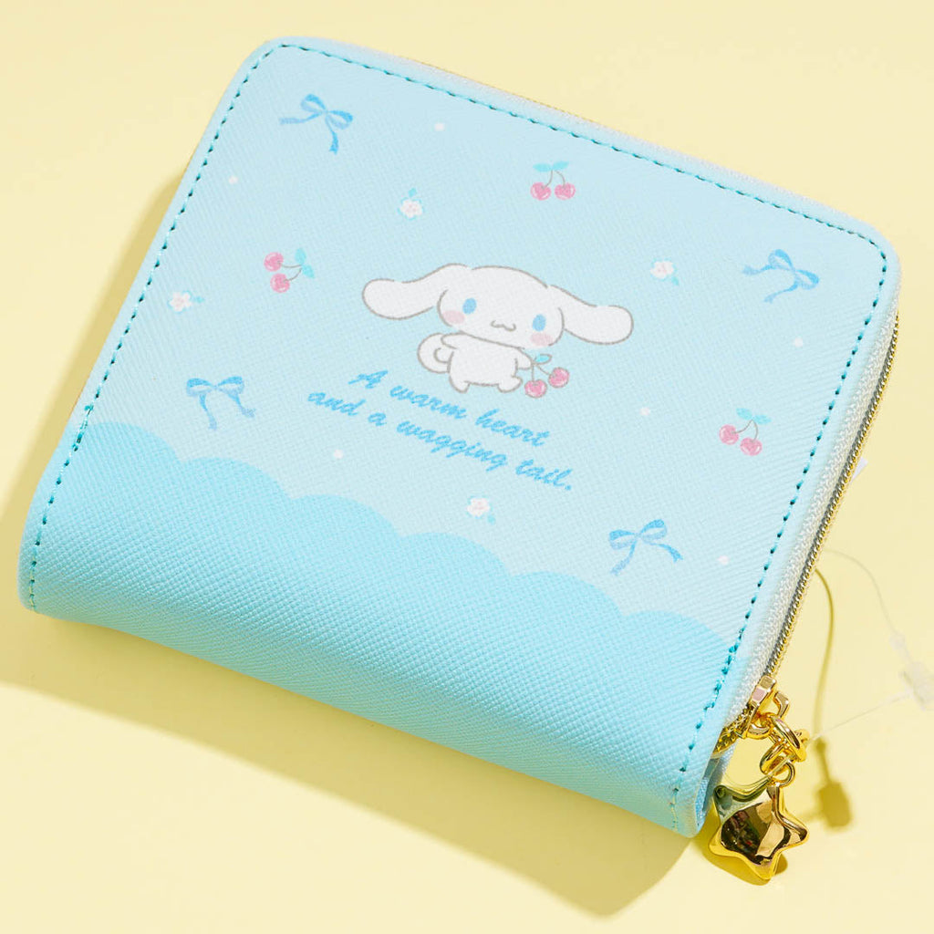 Use this super kawaii folding wallet to store your cash and cards. It has illustrations of Cinnamoroll and cherries! This folding wallet has multiple card slots and a zippered compartment with a divider for coins and other things.