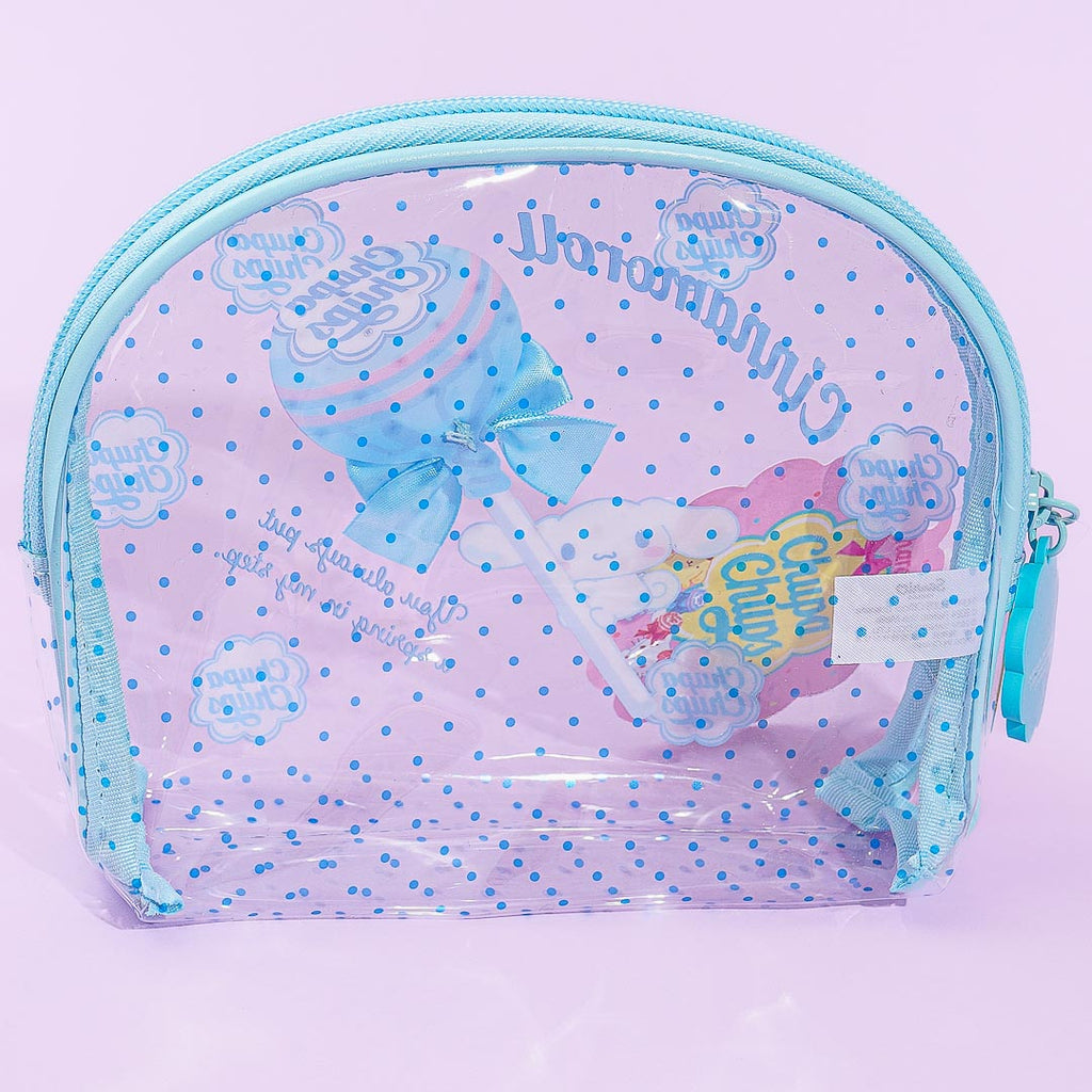 This kawaii transparent pouch features a print of Cinnamoroll holding on to a Chupa Chups lollipop with a nice ribbon decor tied to it. Use this zippered pouch to store your charms and other trinkets. It comes from a collab between Sanrio and Chupa Chups.