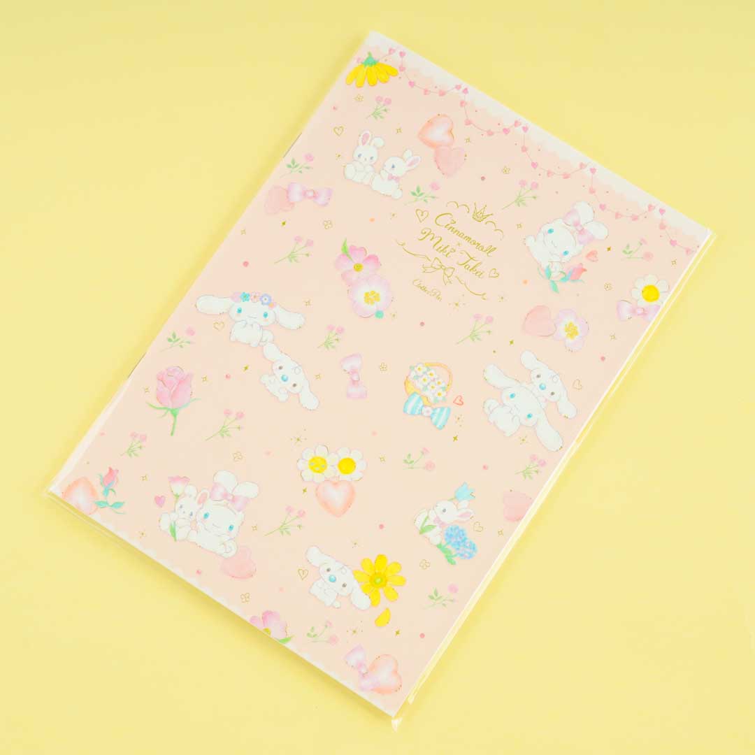 Enjoy composing songs or poems using this super cute notebook! It’s filled with prints of Cinnamoroll pretending to be a bunny while surrounded by flowers! The special illustration is created by Japanese artist, Miki Takei. The notebook also has lined sheets inside.