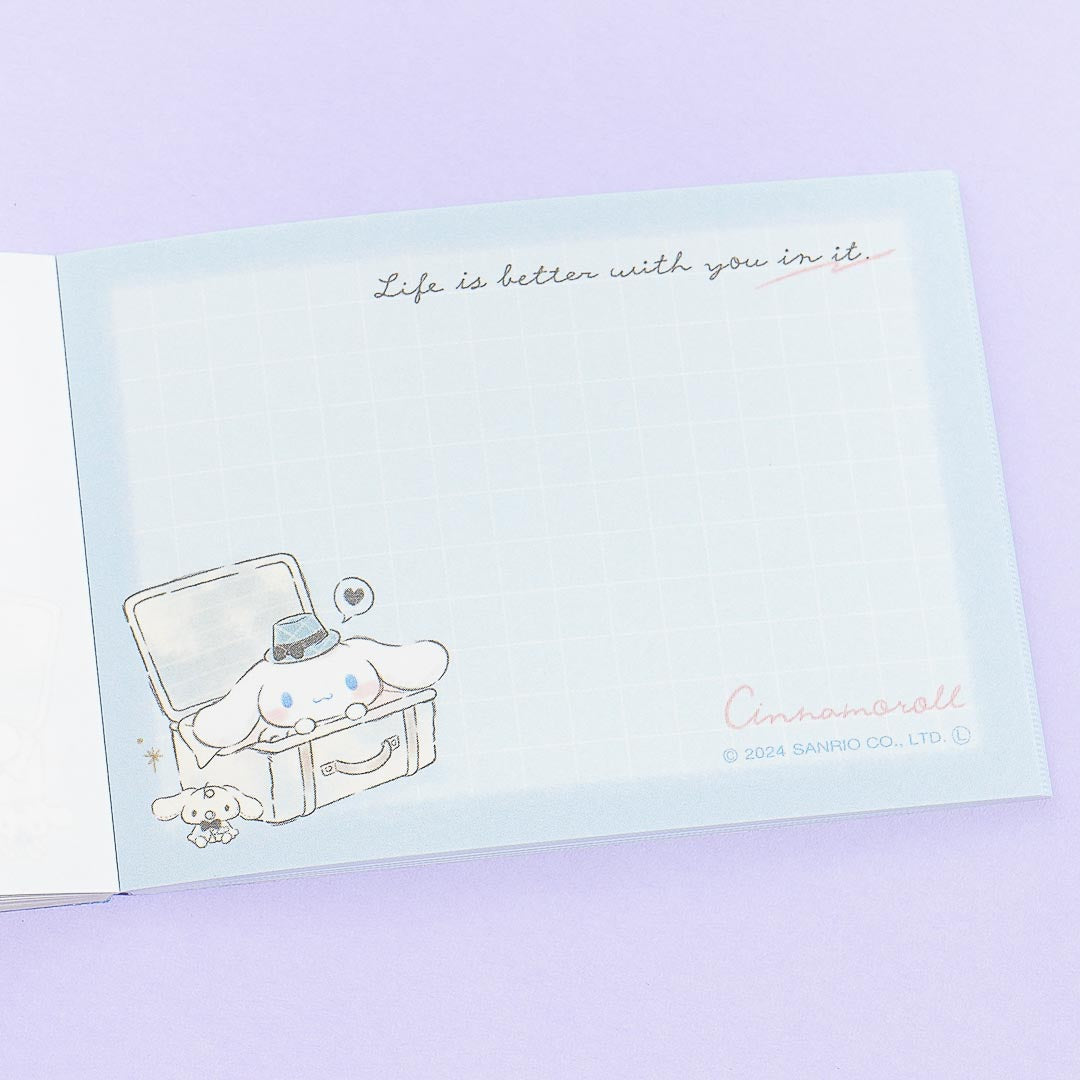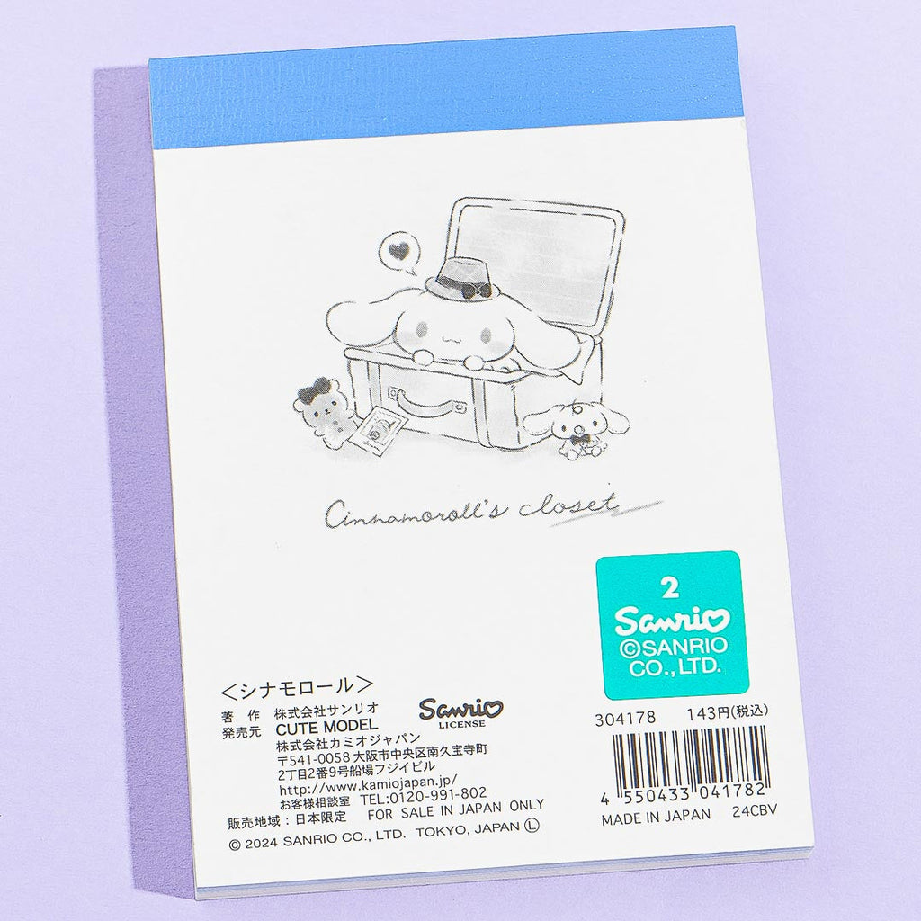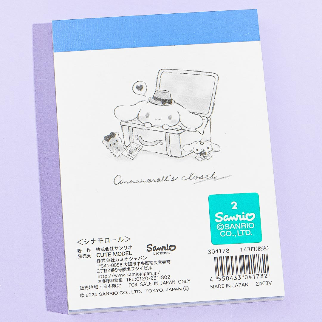 Enjoy writing short notes and reminders on this mini memo pad! The pages have two kawaii designs featuring illustrations of Cinnamoroll and the cute things in his closet.
