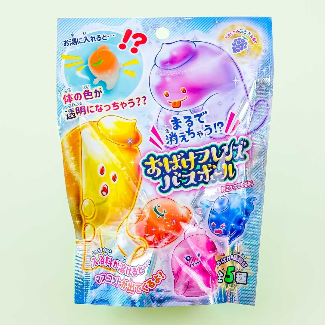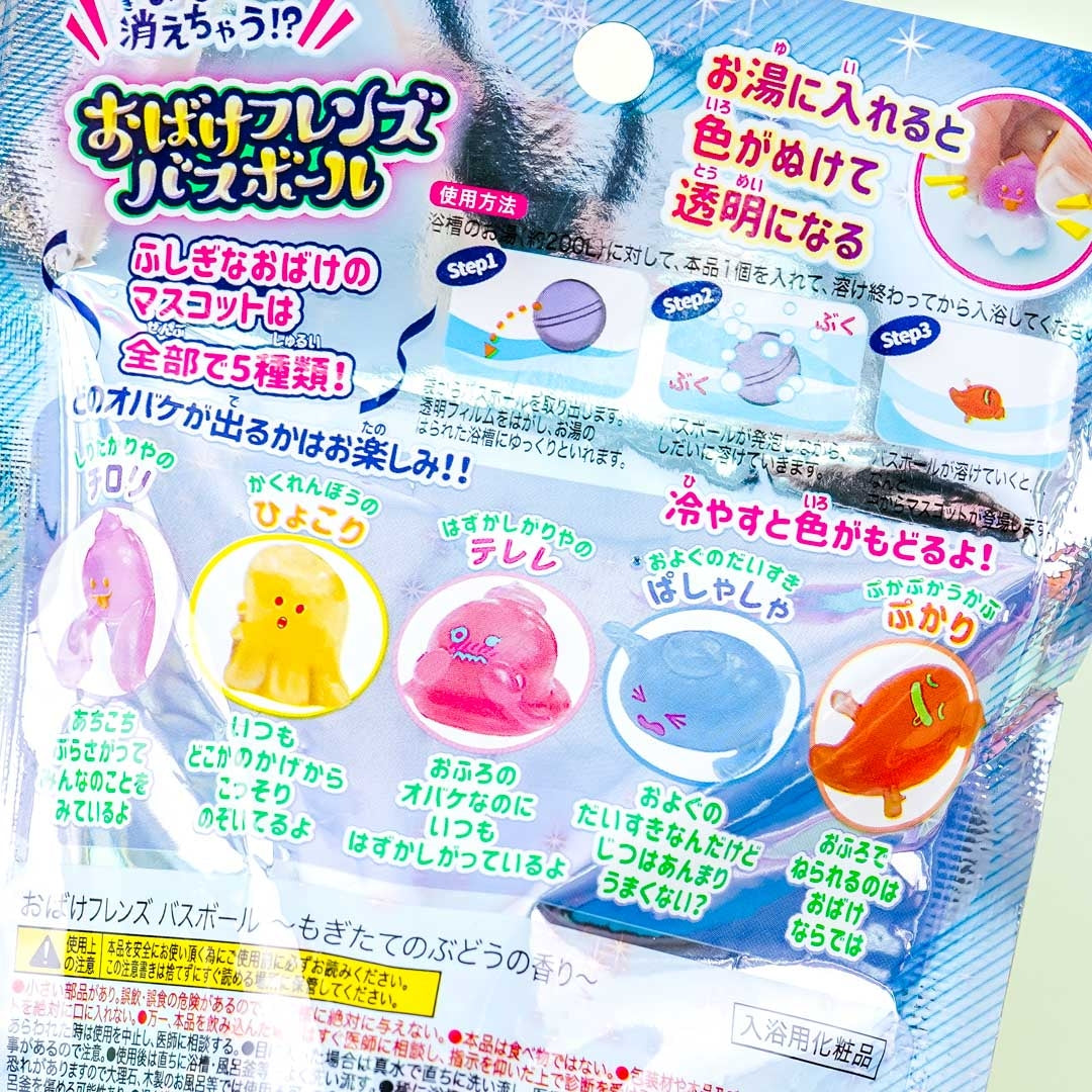 Bring this cute colorful ghost-shaped bath bomb along with you to the bath! It has a lovely grape scent. Place it in hot water to see the color disappear, turning the bath bomb transparent. Surprise yourself with a ghost bath bomb randomly selected from a set of five when you order.