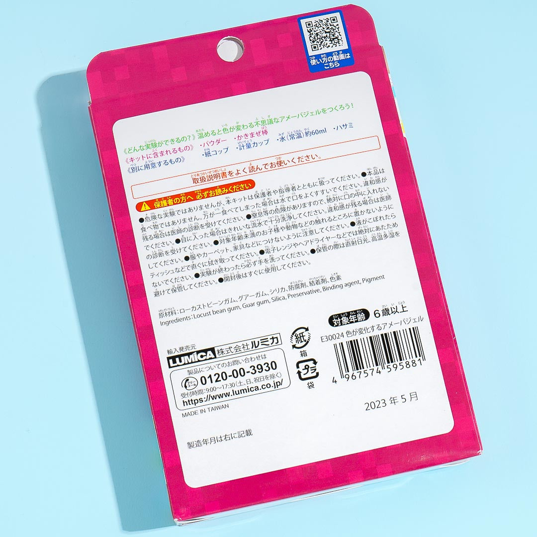 Have fun playing with this DIY experiment kit with your friends! This kit helps you create mysterious amoeba gel that changes color when exposed to heat. All you have to do is mix together the powder in the kit with 60 ml. room temperature water! Stir for five minutes until there are no lumps of powder and then leave it to rest.