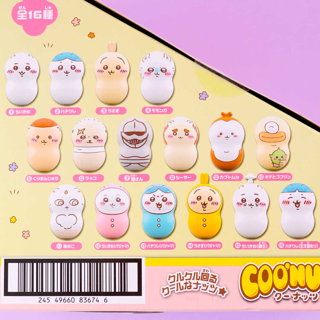 Have fun as you watch this cute tumbler toy twirl! It has a unique peanut-like shape and features a random character from the original LINE FRIENDS sticker series called “Chiikawa” by Japanese illustrator, Nagano.