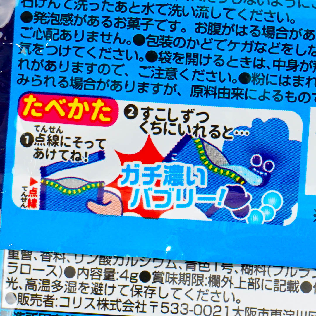 Have fun eating this powdered candy! It's soda-flavored and turns blue when you open it! This unique candy is perfect for sharing with friends.