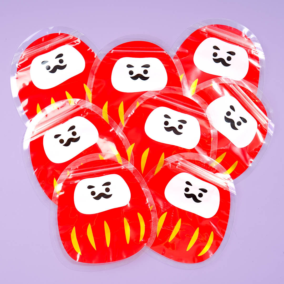 Give away candies and small trinkets at parties using this kawaii set of zip bags. They're made to look like fun Daruma dolls, hollow traditional dolls that are important in Japanese culture! You can also use them to store your own goodies.