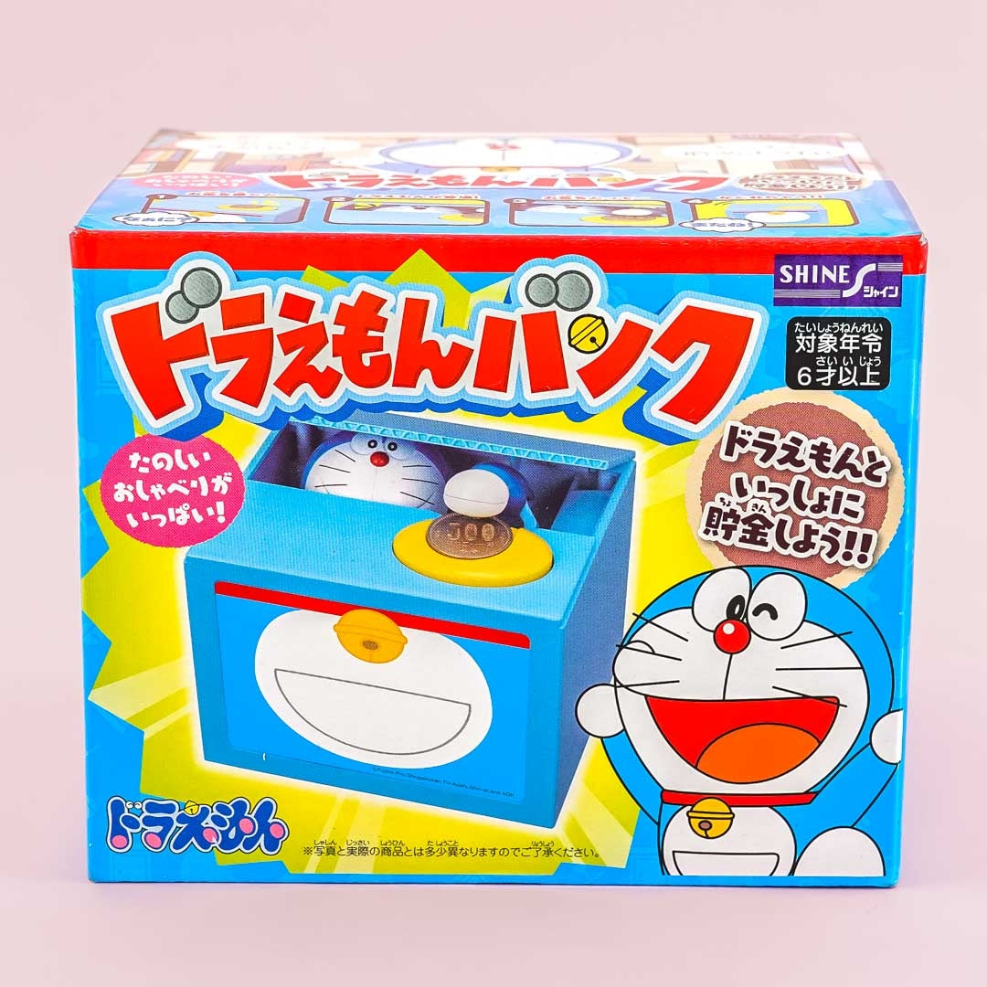A kawaii coin bank box featuring Doraemon