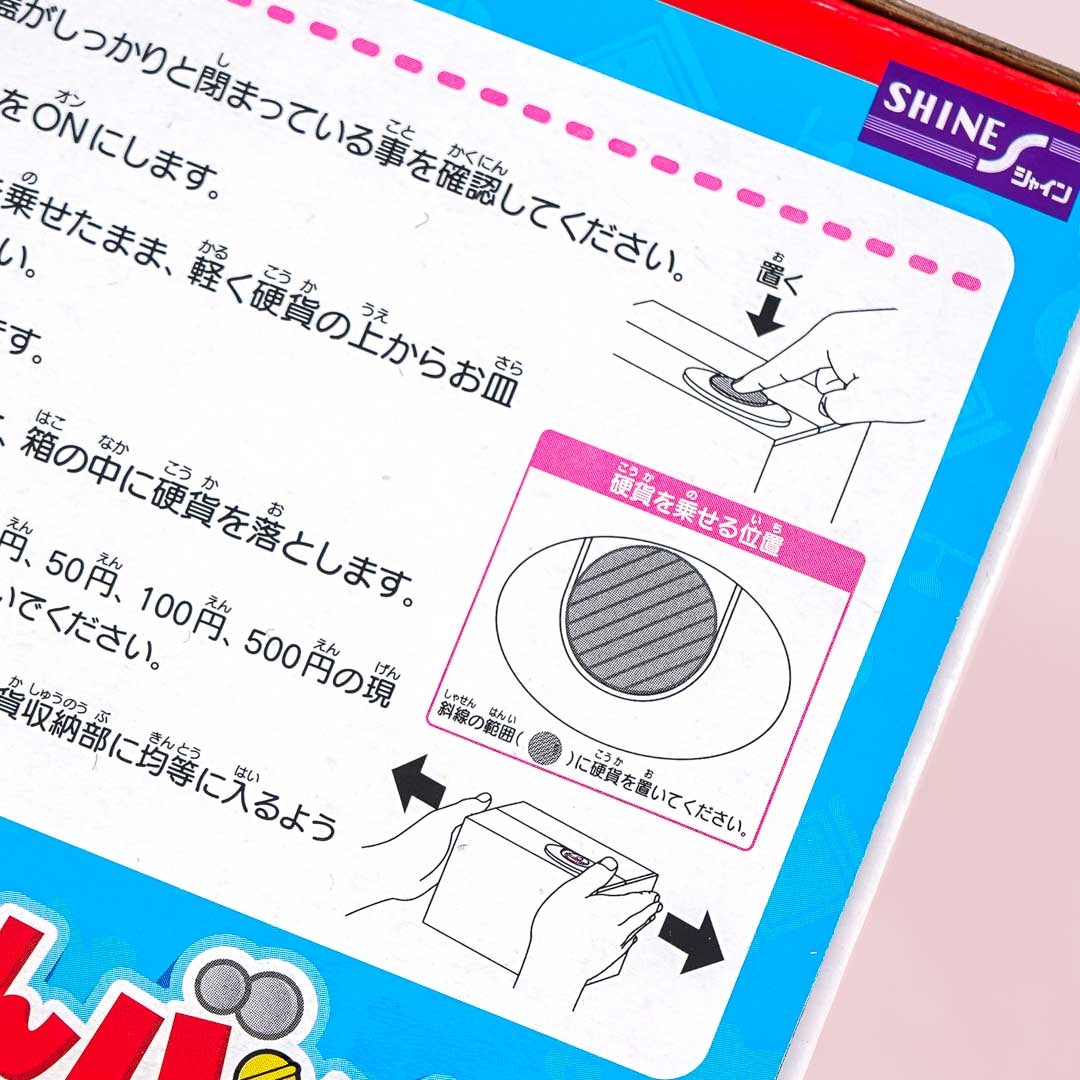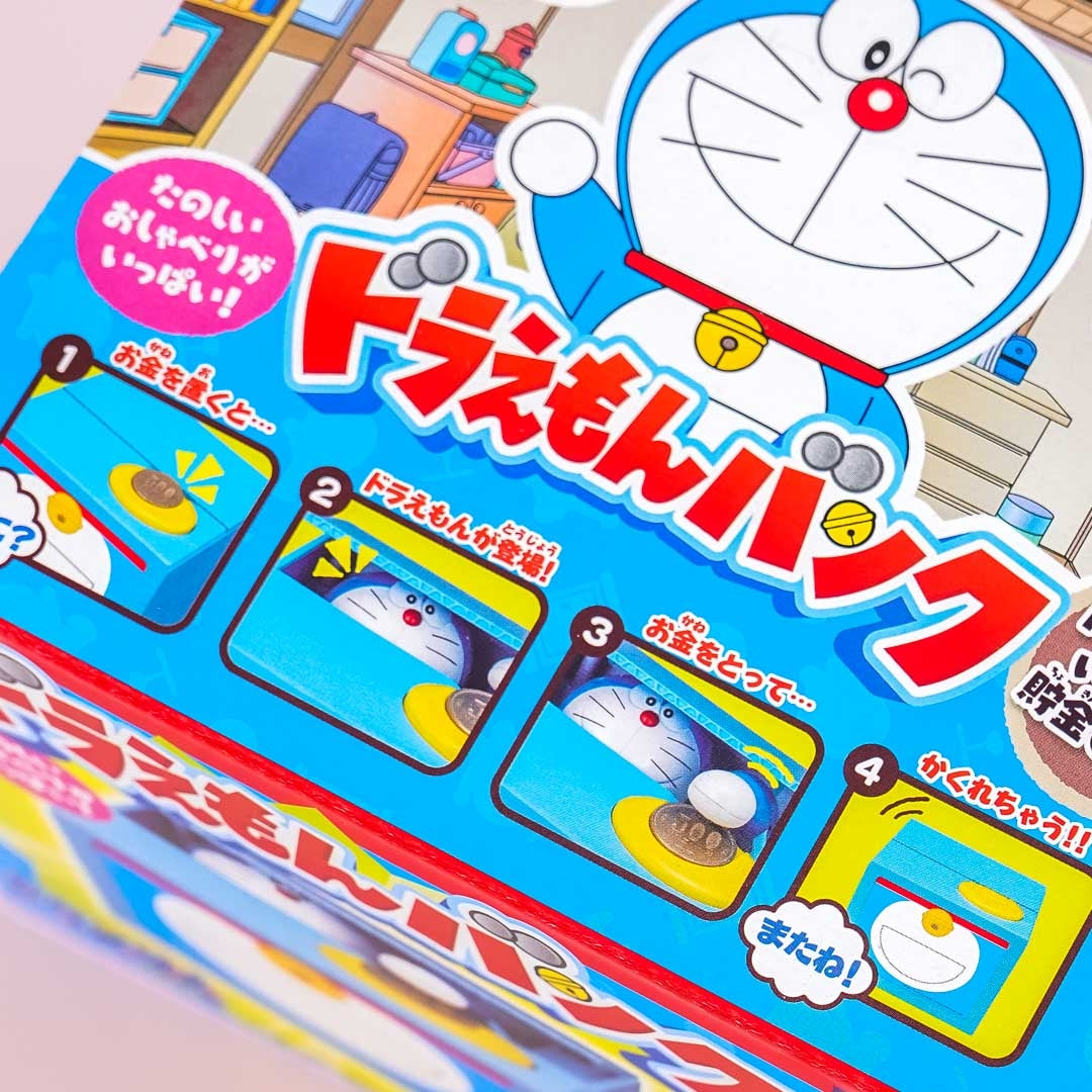 Have fun saving money with this kawaii box-shaped piggy bank! Music will start to play as you place a coin on the plate. You can spot Doraemon popping out of the coin bank to stash your money away!