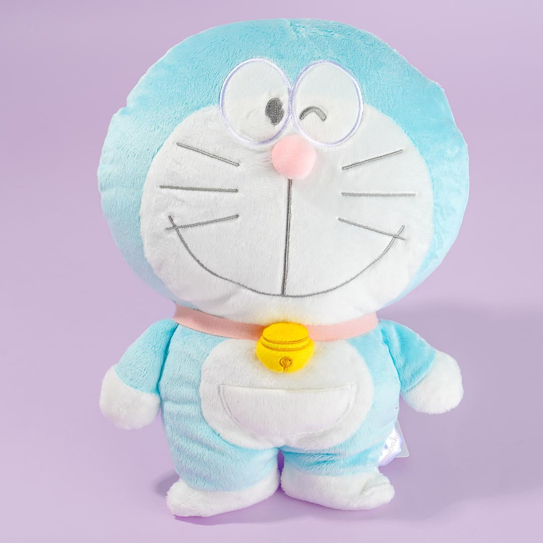 This cute pastel-colored Doraemon plushie is the perfect nap buddy. Have fun cuddling together with this big stuffed toy! It's made of soft material that's perfect for hugs.
