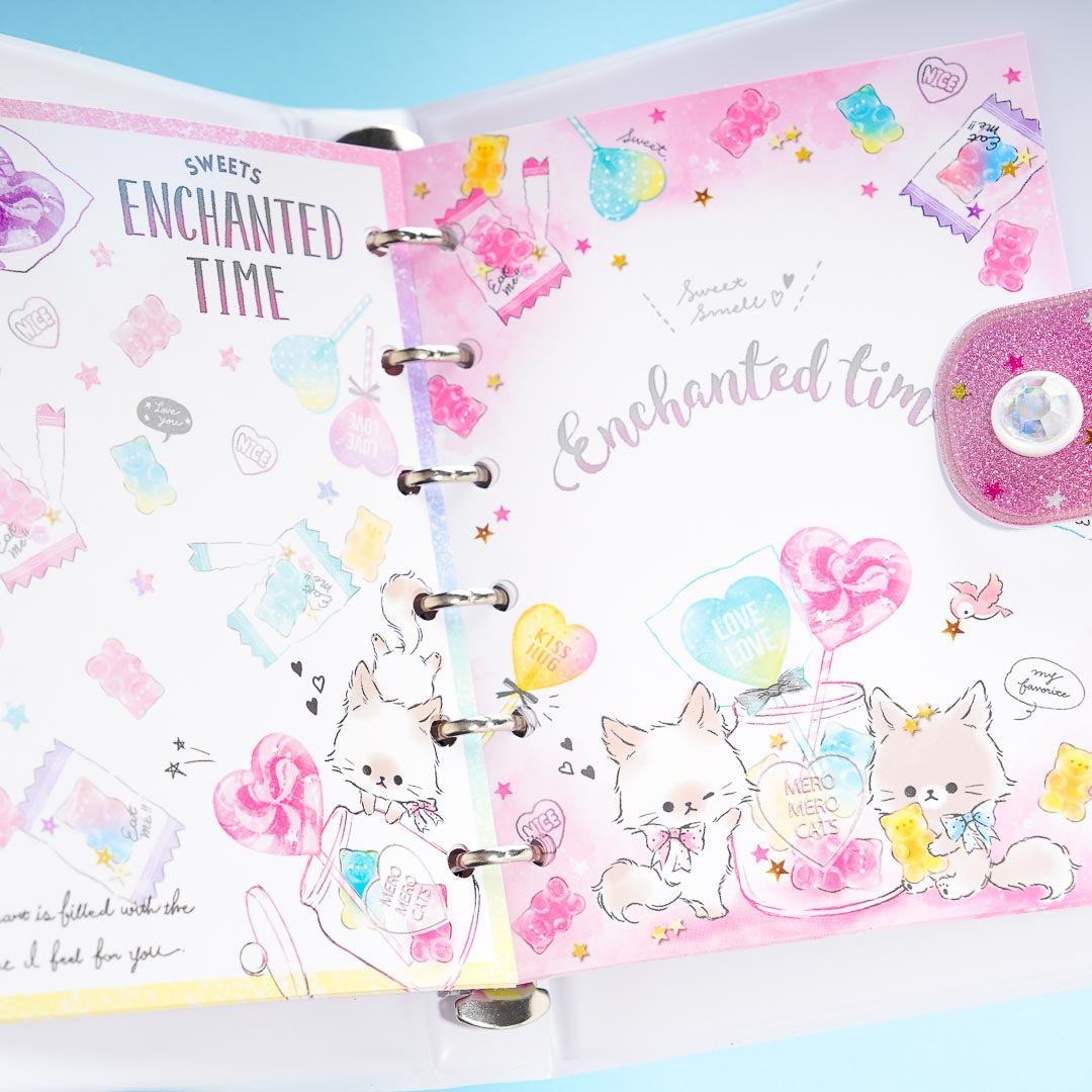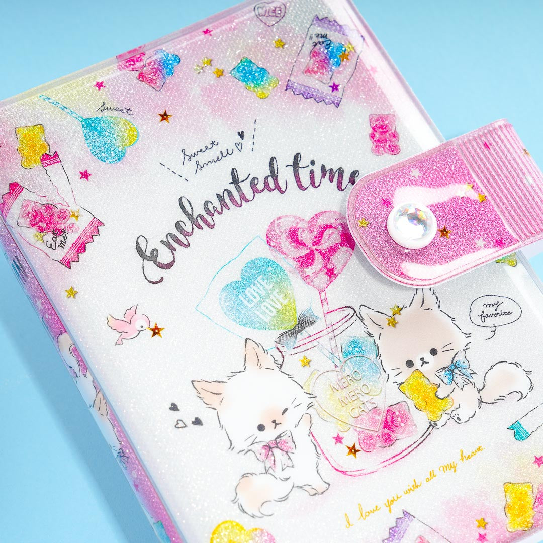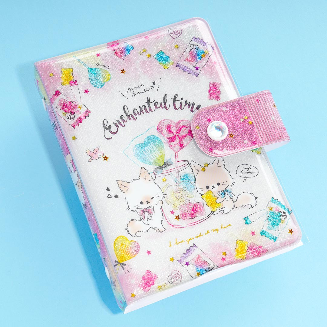 Have fun writing on this super cute binder notebook. It's covered in prints of candies and cute animals! This notebook has a button closure to keep all your secrets safe.