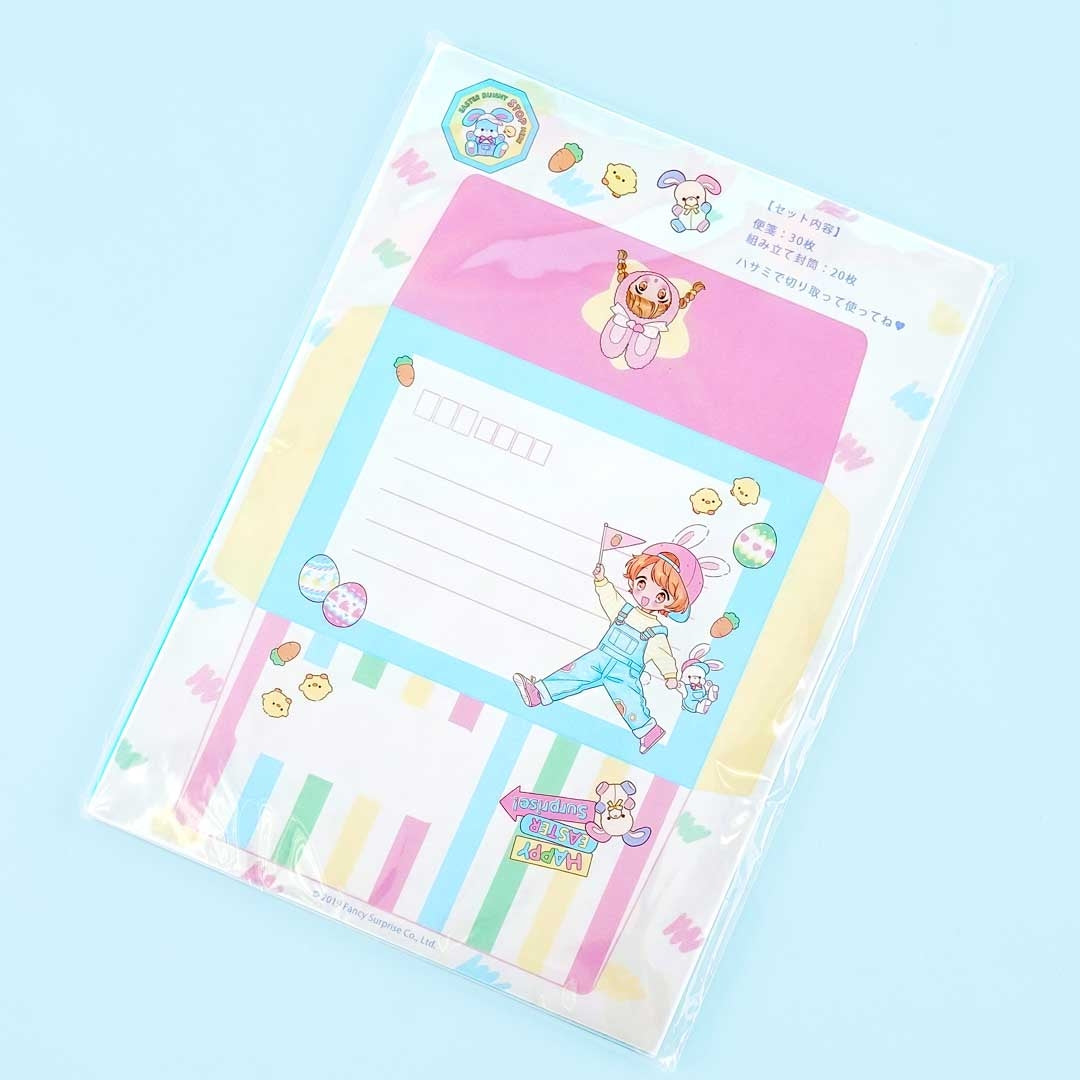 This super kawaii letter set features prints of children with Easter eggs, bunnies, and chicks! It comes complete with A5 letter paper and DIY envelopes which you need to cut and assemble. Send special messages to your loved ones with this cute letter set!