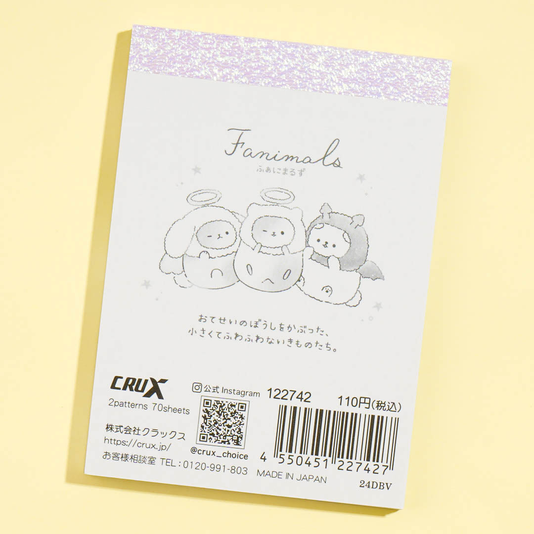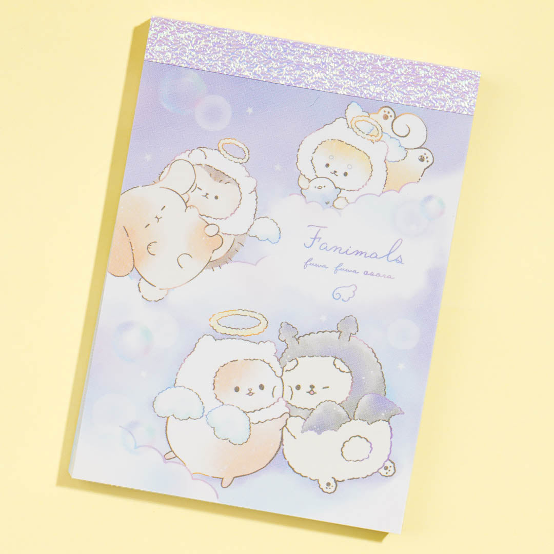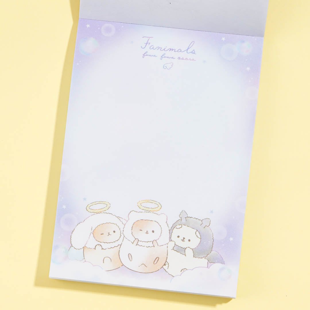 This kawaii mini-sized notepad features prints of Fanimals on fluffy clouds! Use it to write your short messages and reminders.