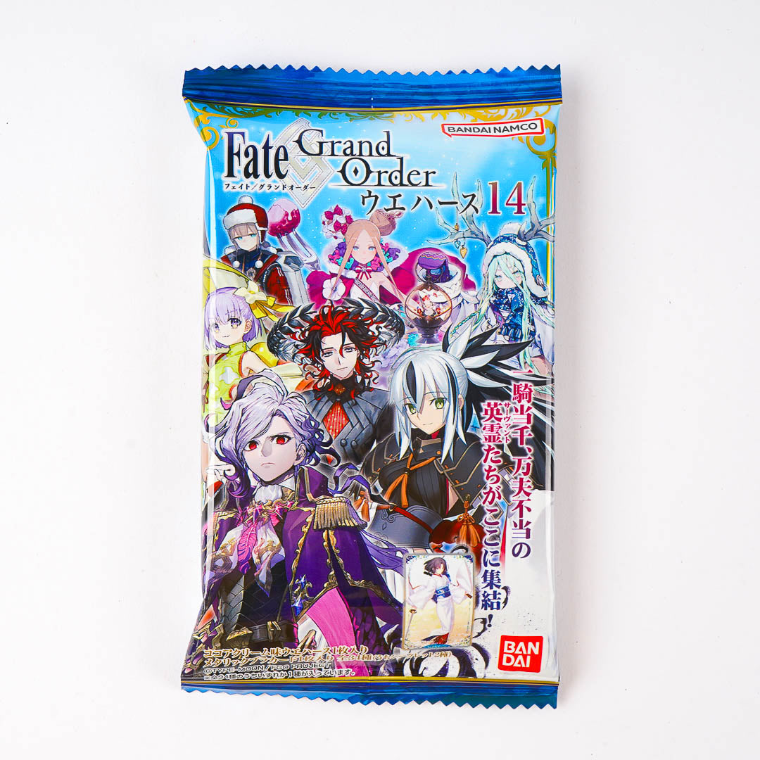 Give yourself the energy you need for the next gaming session by snacking on this cocoa cream wafer pack. It features prints of Fate/ Grand Order characters! Inside the pack, you'll find a collectible Fate/ Grand Order card.