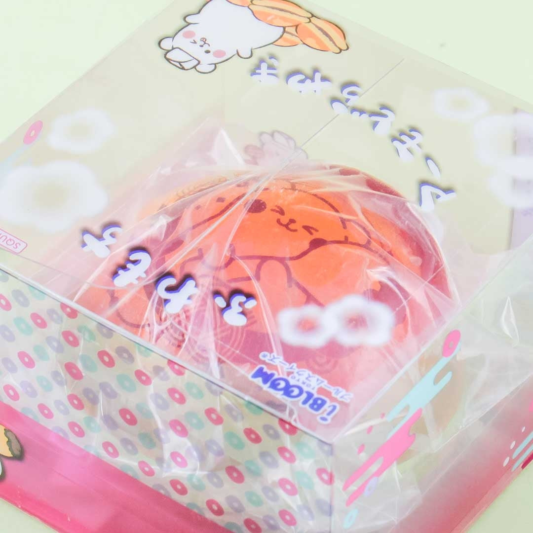 Relax and squeeze your stress away with this super cute squishy! It looks like a matcha-filled dorayaki with a bear. When you open the clear box packaging, you’ll smell a sweet honey scent.