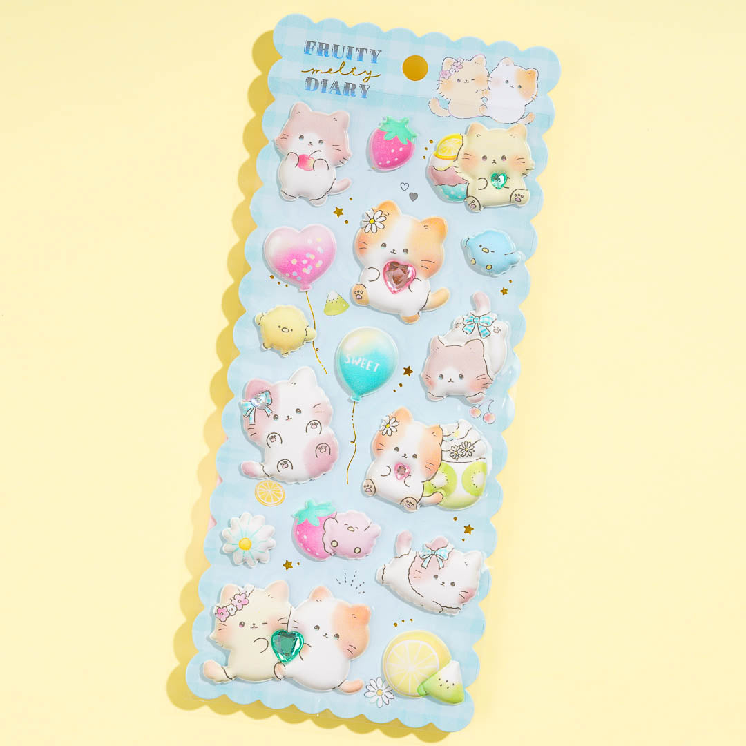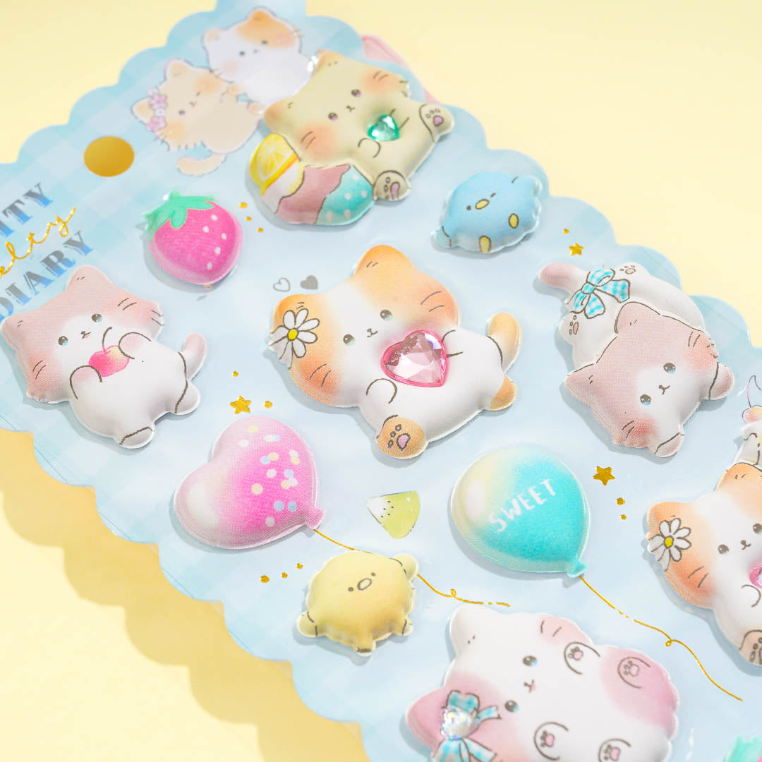 These die-cut puffy stickers feature super cute kittens with heart-shaped gems! Use them to decorate your desk organizers.