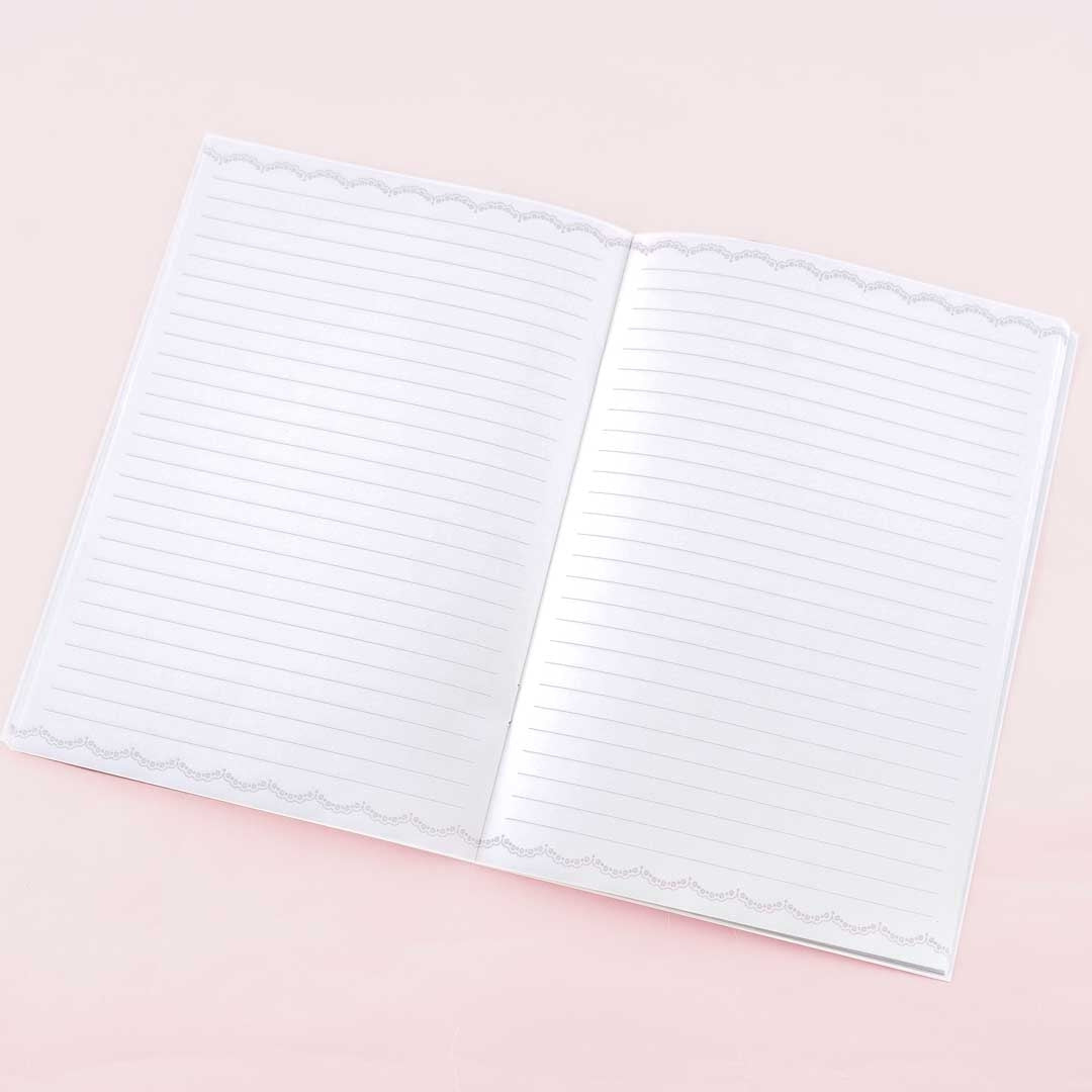 A super cute A5 notebook illustrated with kawaii cats and ribbons