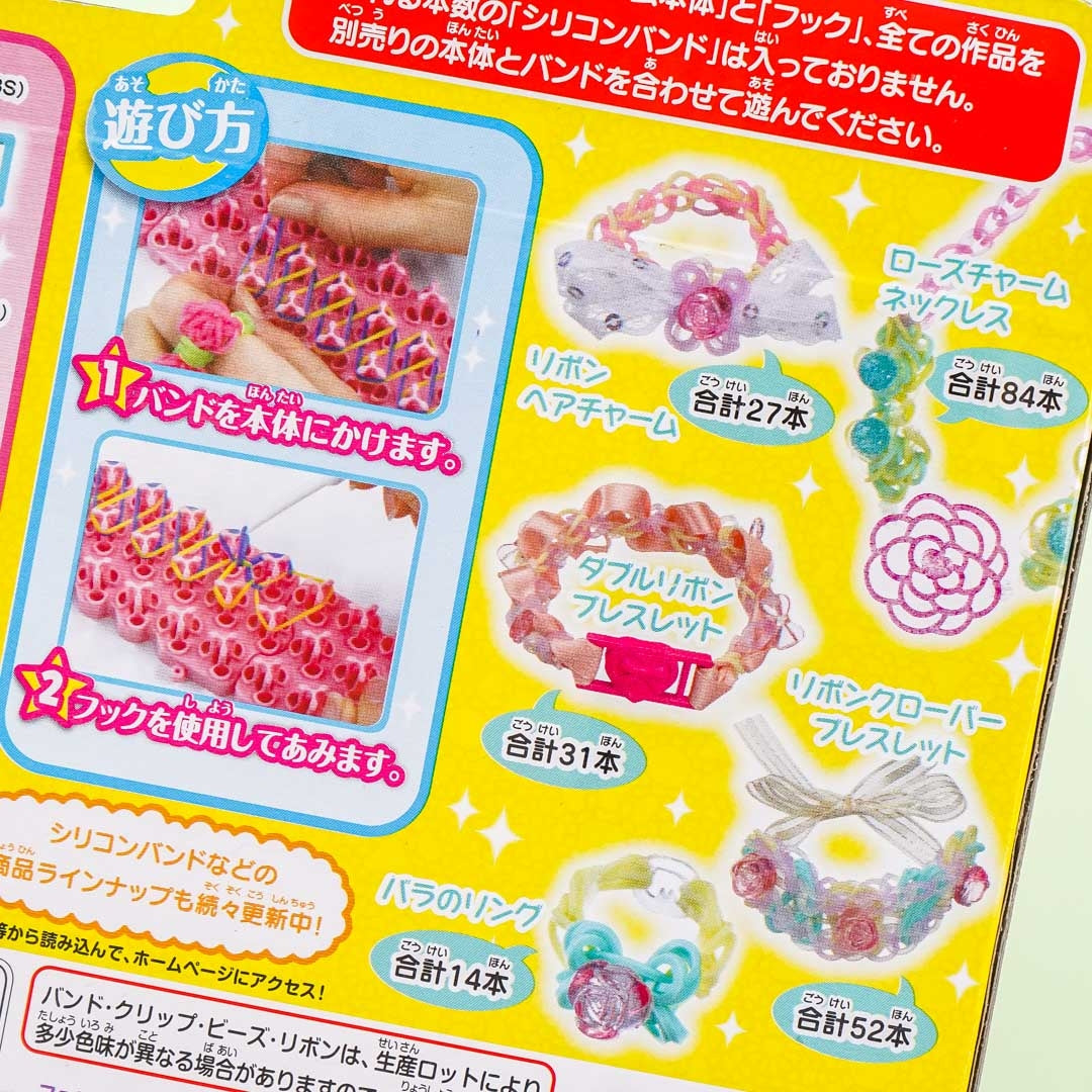 Bond with your BFFs by making your own friendship bands, necklaces, and other kawaii rose-themed jewelry with this DIY kit! The boxed set also includes stretchable silicone loom bands, ribbons, rose charms, beads, and five various pattern instructions so you can easily make your accessories! You can also use this kit with the FunLoom Plus knitting machine which is sold separately.