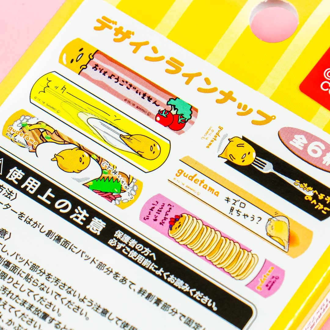 This kawaii box of bandages features six designs with wacky illustrations of Gudetama! Use these bandages to protect your wounds from dirt and infection.