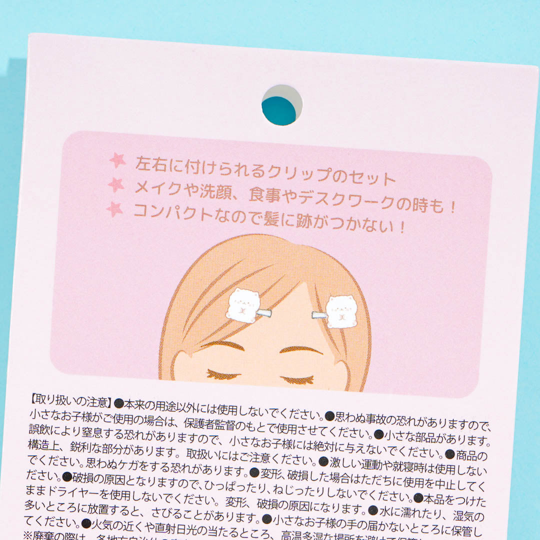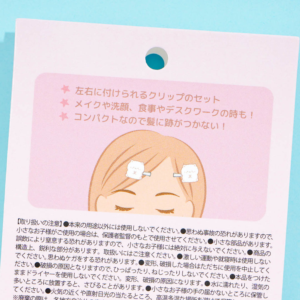 Wear these kawaii clips to keep your bangs secured while putting on makeup! They feature a fluffy blushing kitten from Funwari Necolon. The clips come in compact size and won't leave a crease on your hair!