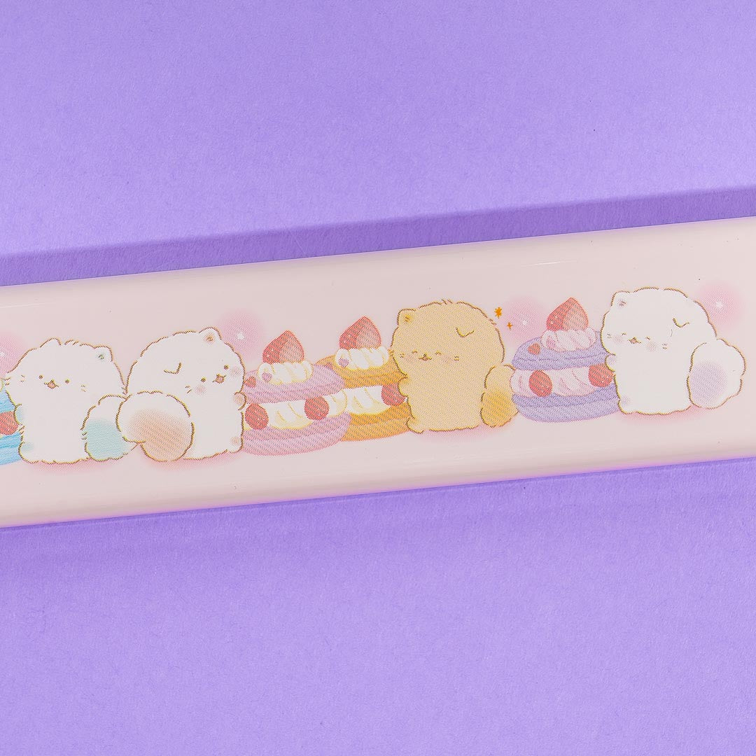 Have fun using this reusable pair whenever you eat ramen! These pastel pink chopsticks come with a case that has a sliding lid and features prints of Funwari Necolon cats beside huge macarons. The super cute set is also safe for dishwasher use and is recommended for children!