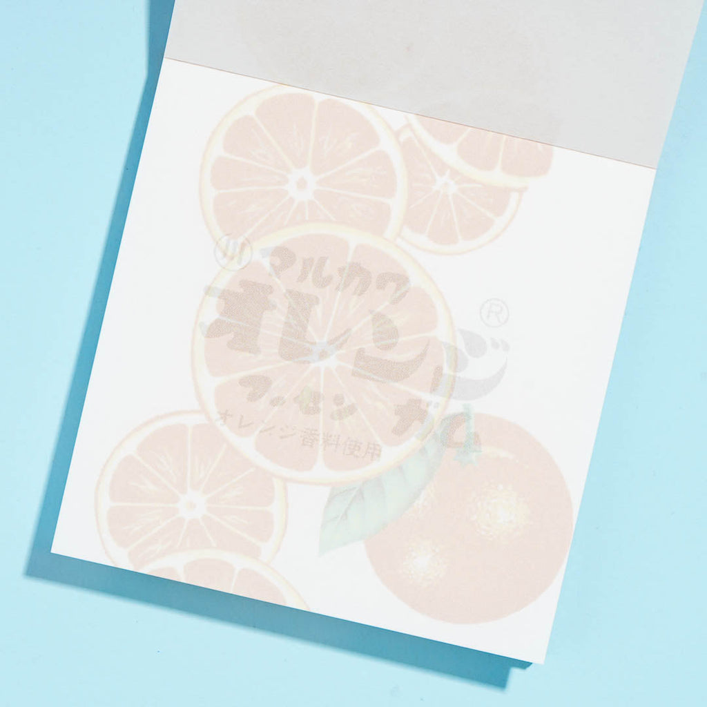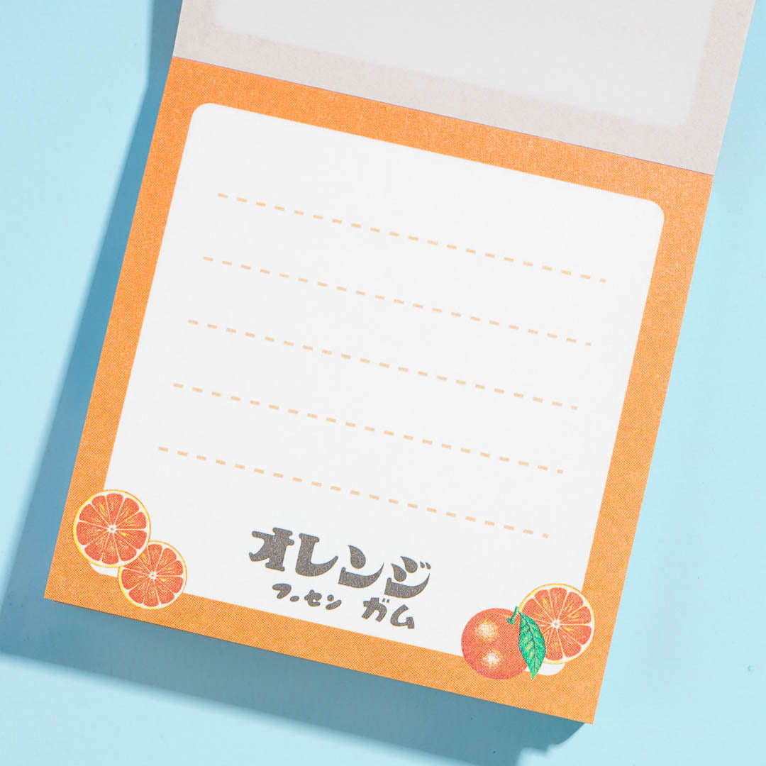 This memo pad features cute illustrations inspired by orange-flavored Fusen Gum! Use it for your important reminders.