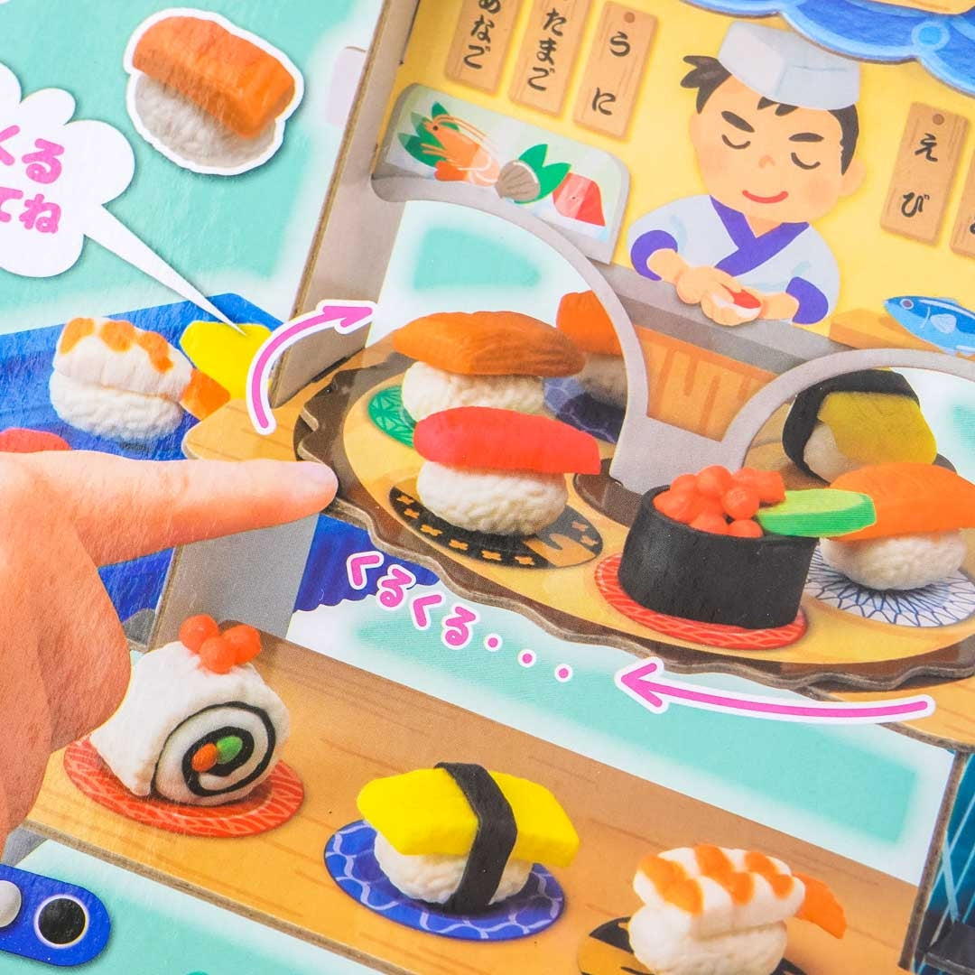 • A DIY clay molding kit featuring a small sushi conveyor belt restaurant