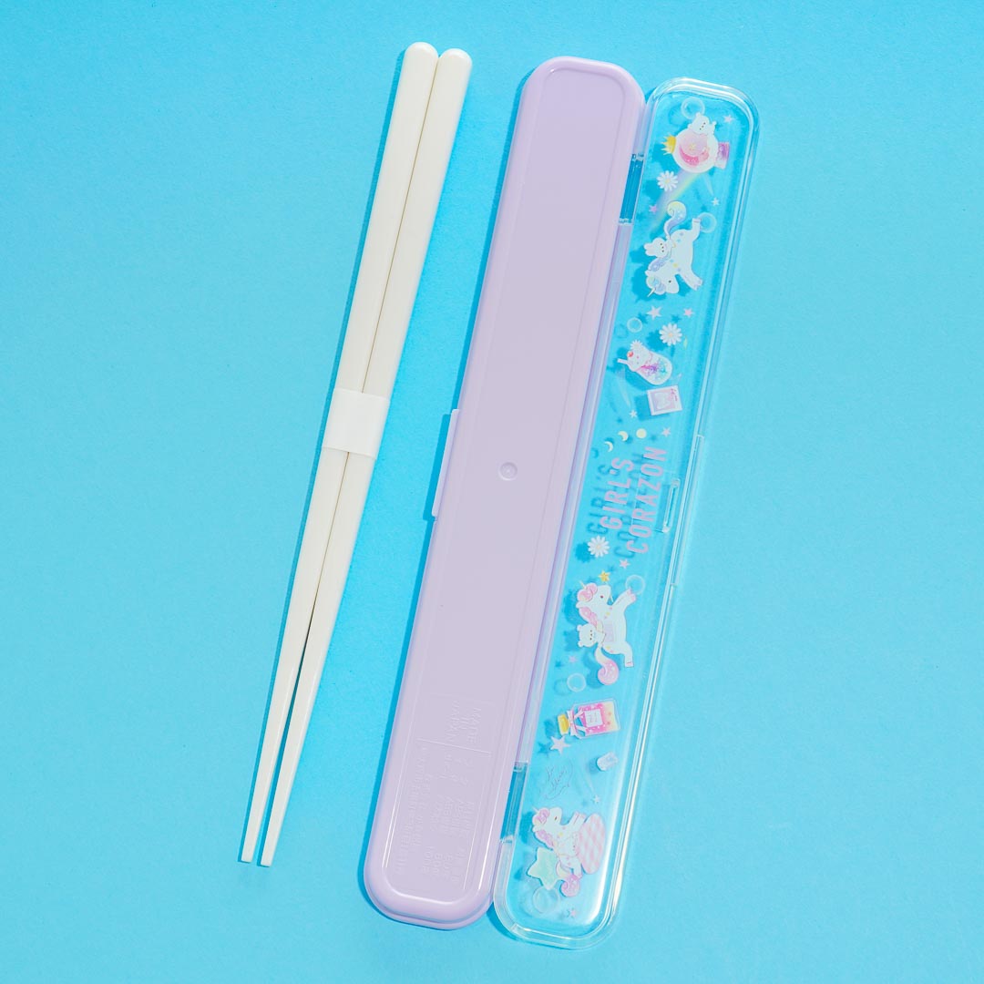 Use this kawaii pair of chopsticks every time you want to eat dumplings! The cute reusable set also includes a storage case with a clear flip lid that has illustrations of bears riding unicorns!