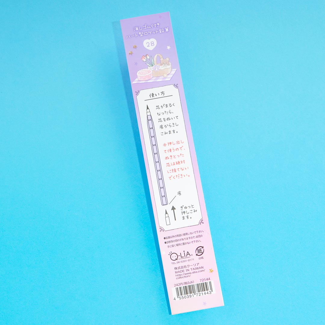 This super kawaii 2B pop-a-point pencil is covered in prints of flowers, baskets, and other cute things. On its cover is a cute heart-shaped decor with moveable beds. Use it to practice drawing and sketching!