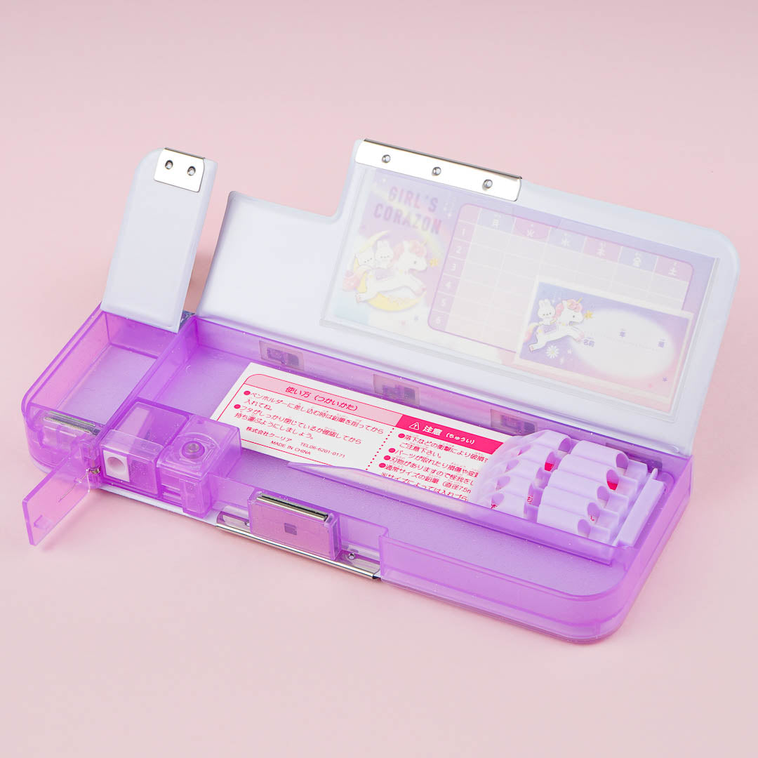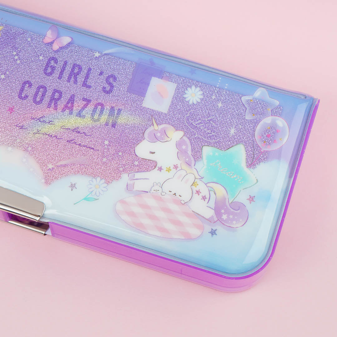 Keep your writing materials in this kawaii pencil case. It features illustrations of cute bunnies with unicorns on a starry background. The pencil case has two sides so you can organize your pens and pencils.