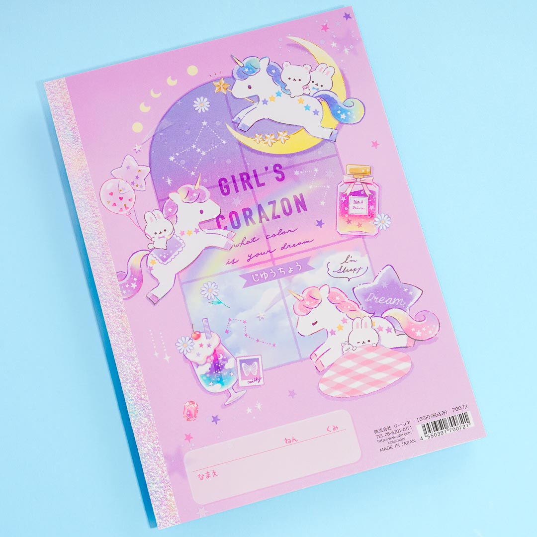 This cute notebook is covered in prints of unicorns playing around! Use it to practice sketching and writing stories.