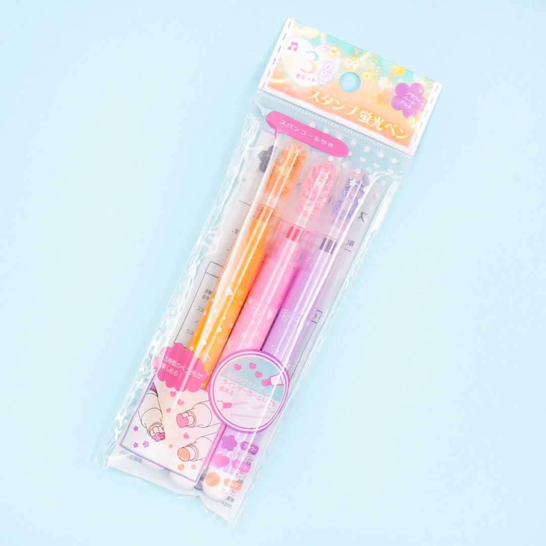 Have fun studying with this kawaii set of highlighters! These highlighters have three different tip shapes and colors. It includes a heart tip highlighter, a flower tip highlighter, and a dot tip highlighter! Each pen is decorated with a glittery design.