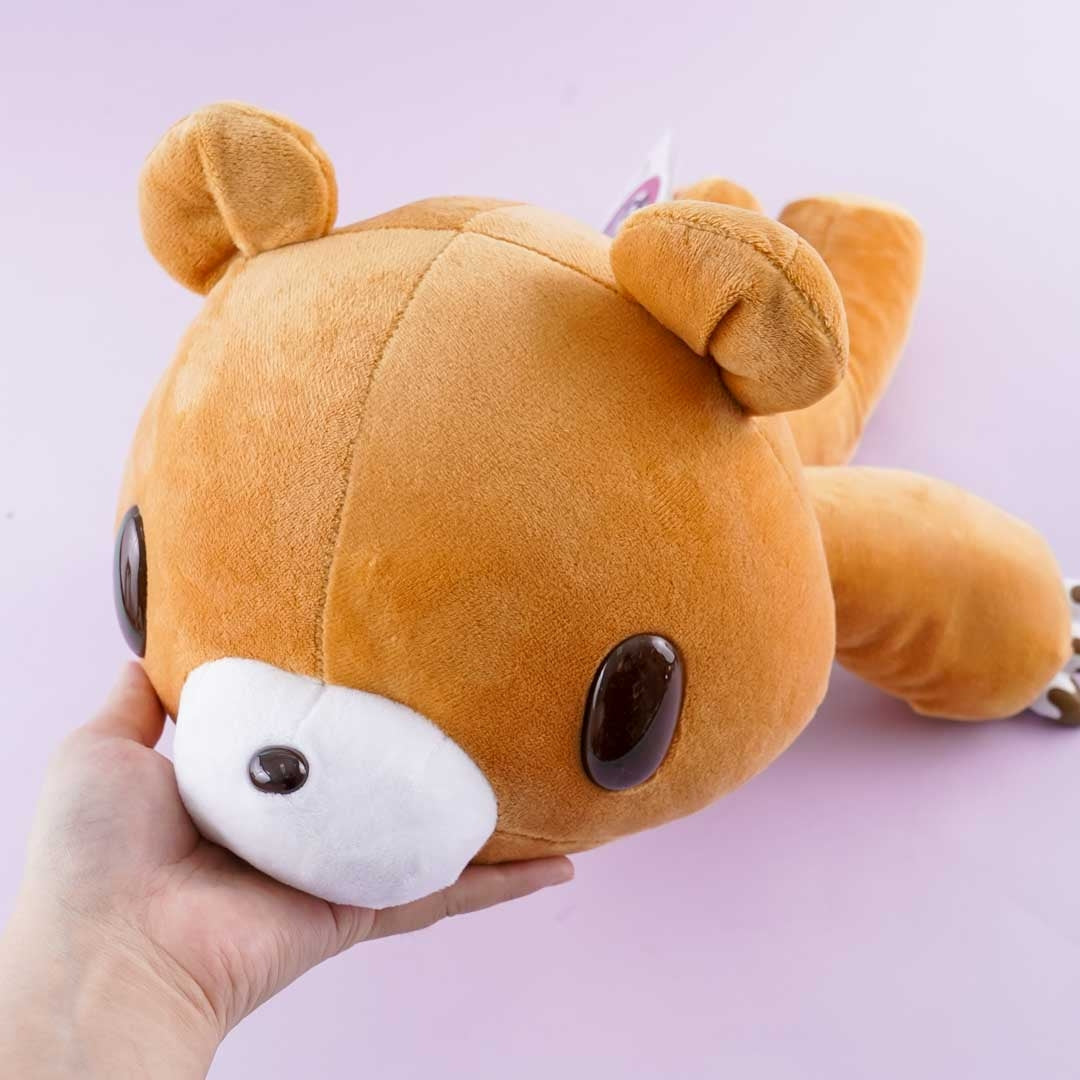 Cuddle together with this cute medium-sized brown Gloomy Bear plushie! This stuffed toy is lying down on its belly. It's made of nice and soft material.