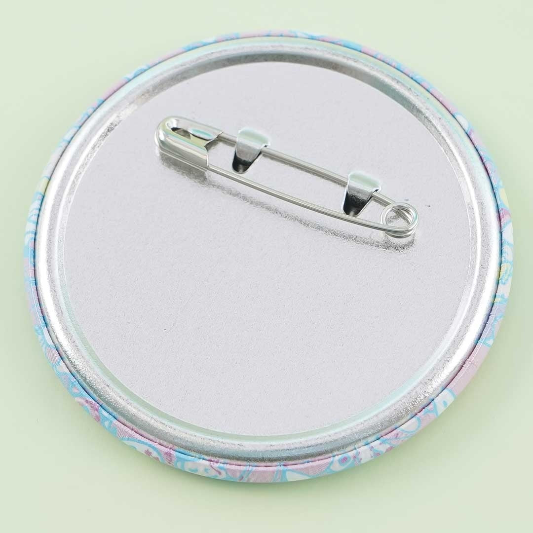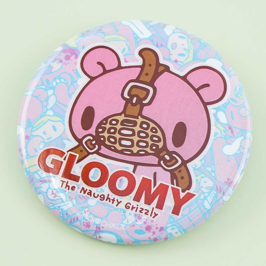 • A super cute badge featuring a print of a Gloomy Bear wearing a mask