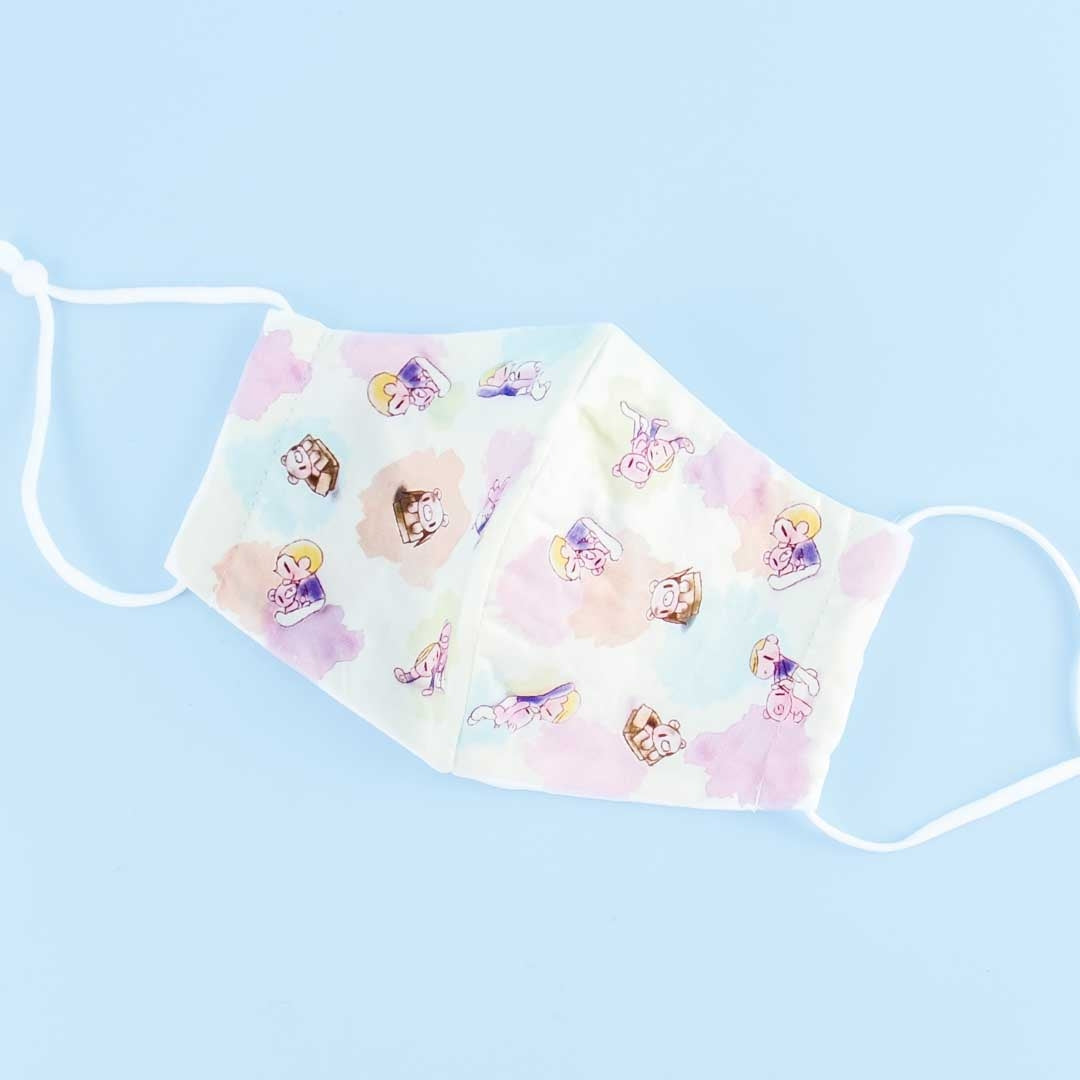 Japanese illustrator Mori Chack created Gloomy Bear or Guru-mi back in 2000. It all started from a collection of postcards filled with illustrations of a pink grizzly bear with its human friend, Piti. There’s always a bloodied mess with the love-hate relationship between this violent kawaii creature and his buddy! In celebration of the 20th anniversary of the series, Chax collaborated with an avant-garde clothing company from Shibuya called “elements, H” in releasing this super cute gauze face mask! It’s made of 100% cotton and features an illustration of Gloomy Bear playing with Piti-kun, his human buddy!