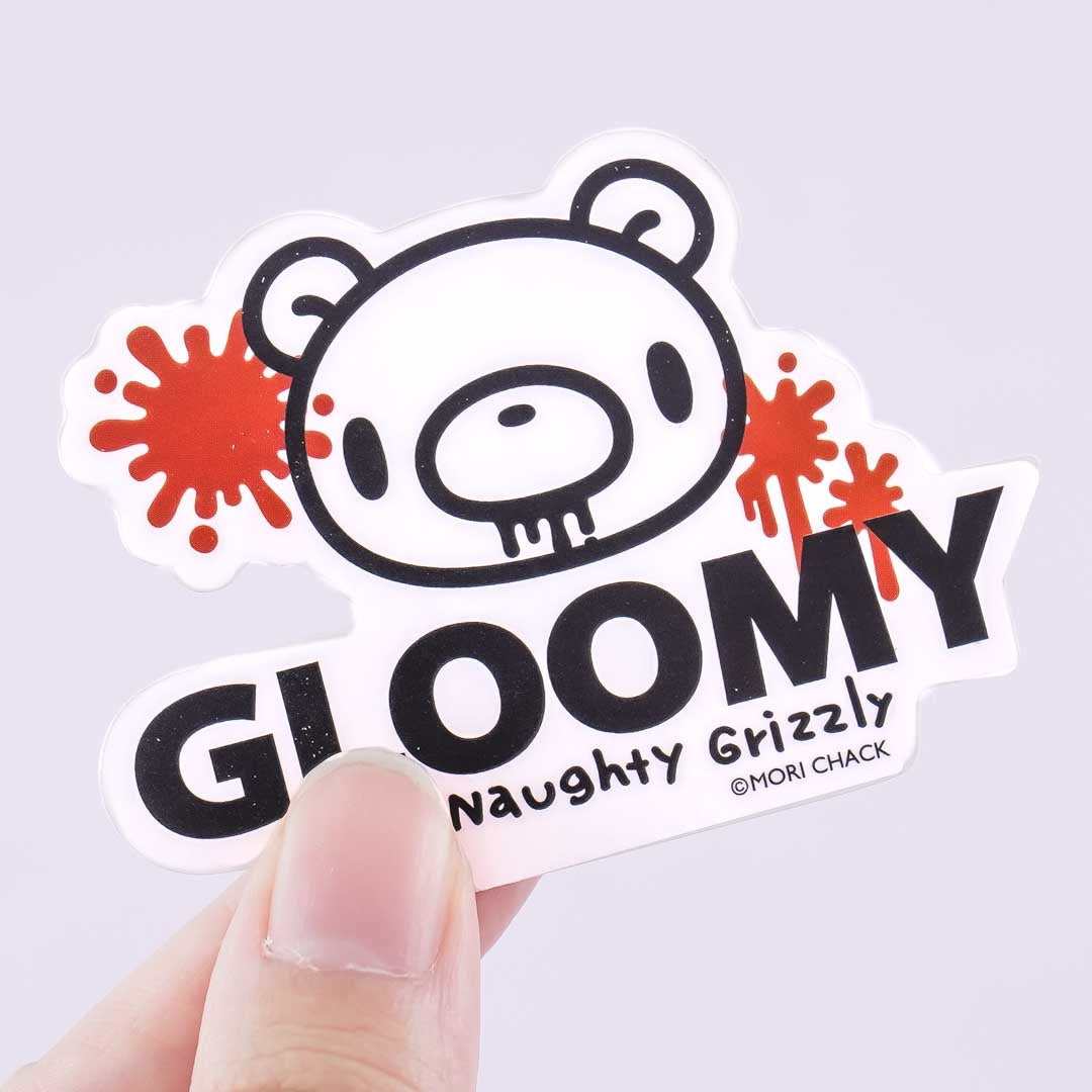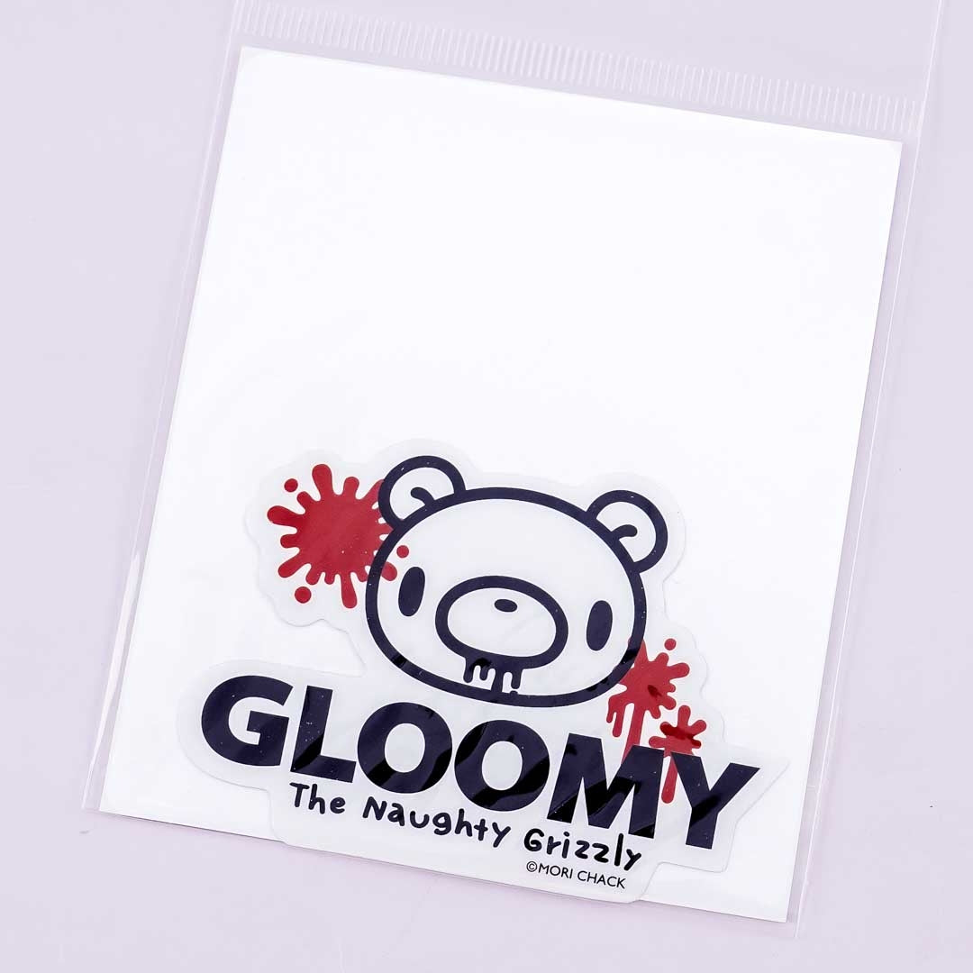 Have fun decorating your favorite book cover with this cute die-cut sticker! It features a black and white print of Gloomy Bear or Guru-mi’s face with bright red blood splatters.