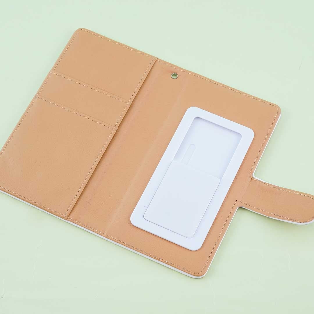 Keep your phone protected with this super cute smartphone cover featuring prints of Gloomy Bear's Chaos Tile design! It features a magnetic button closure, two dedicated card slots, and one inner pocket on the flip side. Slide your smartphone upwards when you need to take pictures!