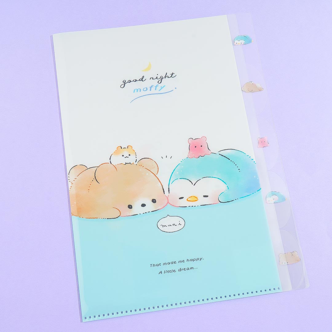 Organize your important documents in this super kawaii index folder with illustrations of fluffy animals lying flat on their bellies! It comes in A4 size and has five clear partitions with index tabs so you can easily sort your files!