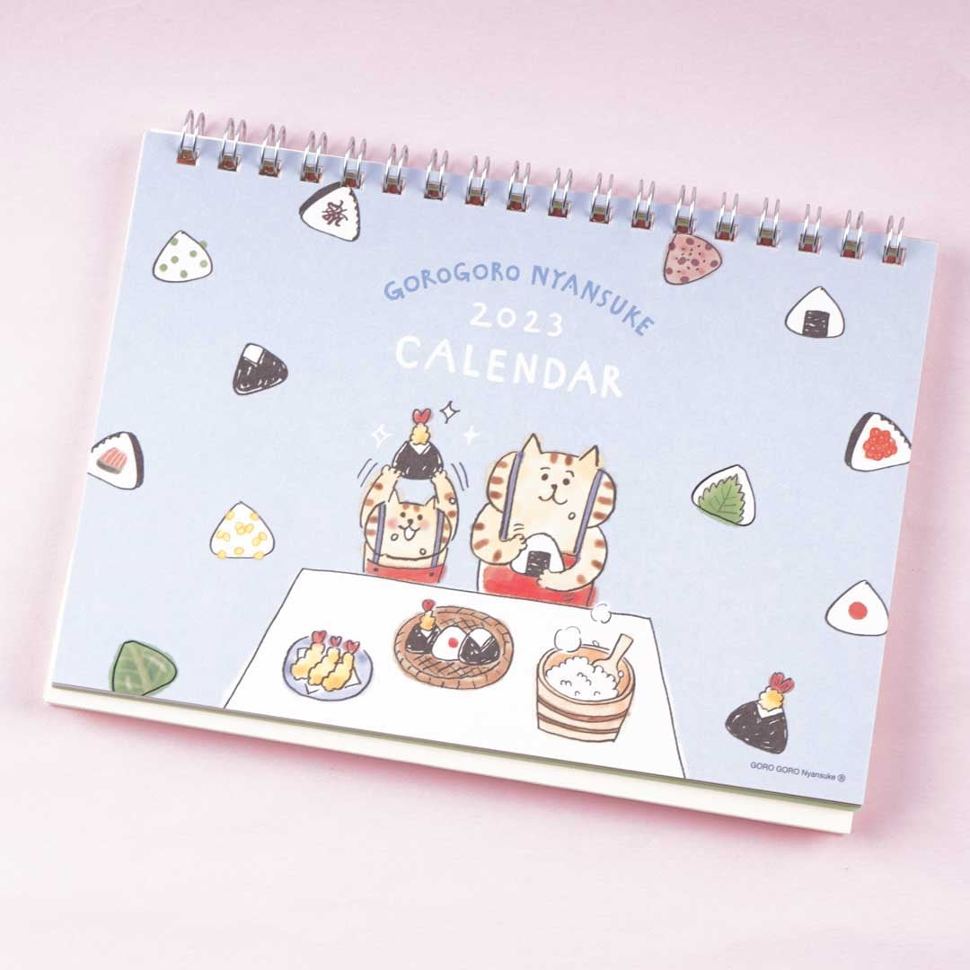A super cute B6-sized desktop calendar featuring prints of Gorogoro Nyansuke characters eating together
