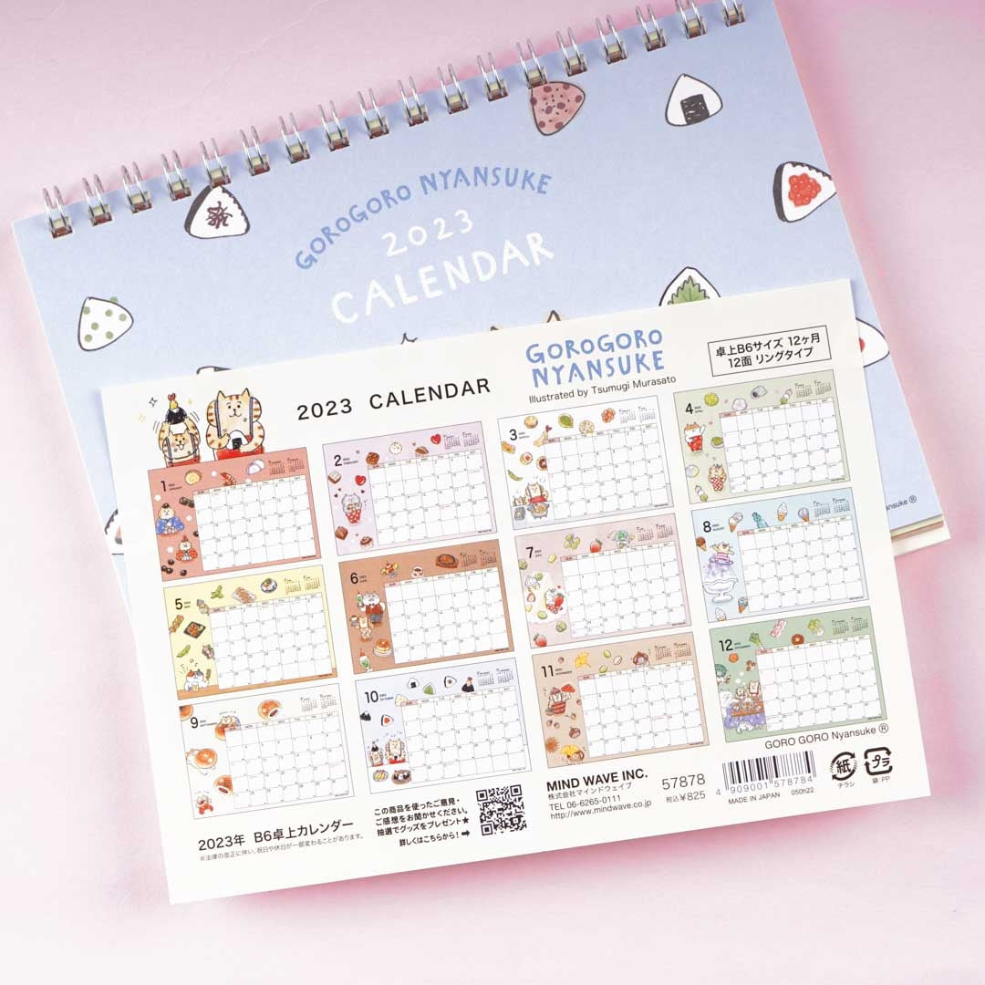 Have fun marking important dates on this cute calendar. It's illustrated with Gorogoro Nyansuke characters having a meal together! You can easily see the date and day of the week on this calendar thanks to its B6 size.
