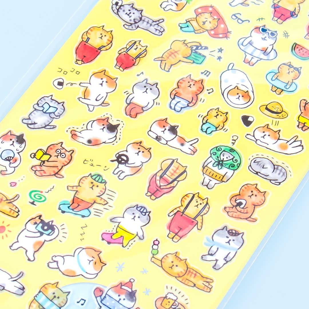 Kawaii-fy your notebook covers with these super cute semi-transparent stickers! They feature Gorogoro Nyansuke characters doing different seasonal activities like ice skating and heading to the beach.