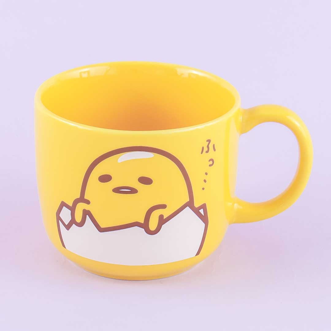 • A super cute mug illustrated with Gudetama looking outside of his eggshell groggily