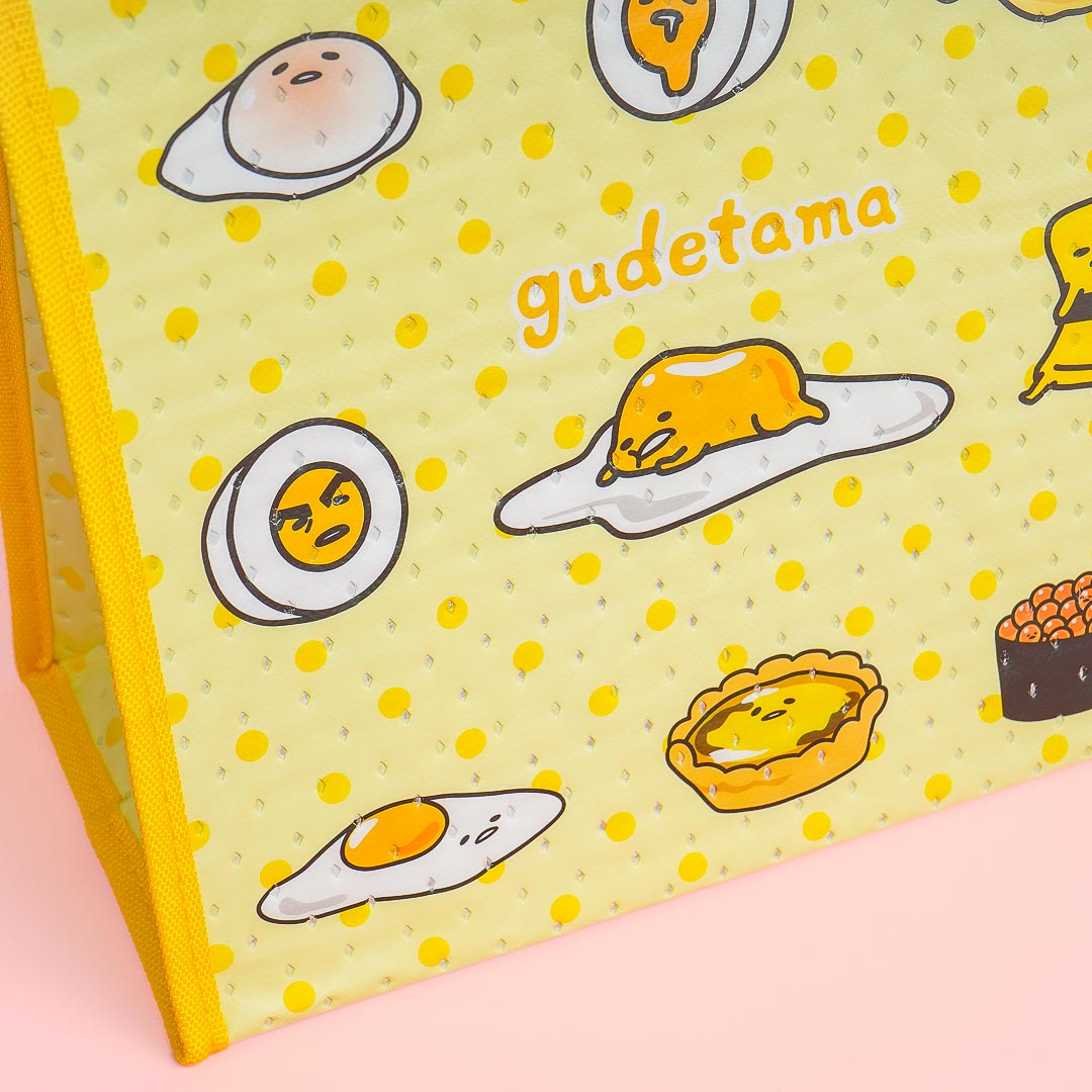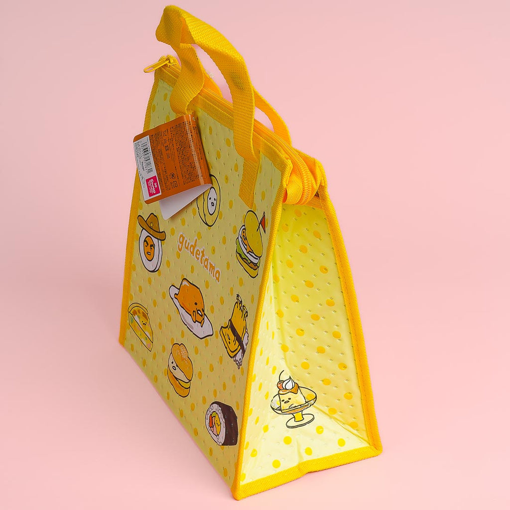 This kawaii cooler bag is perfect for carrying around your lunch! The cooler bag features prints of Gudetama cuties. It has enough space for a bento box and a bottle and features an inner aluminum lining to keep your food fresh.