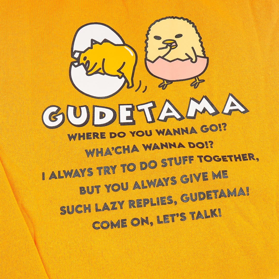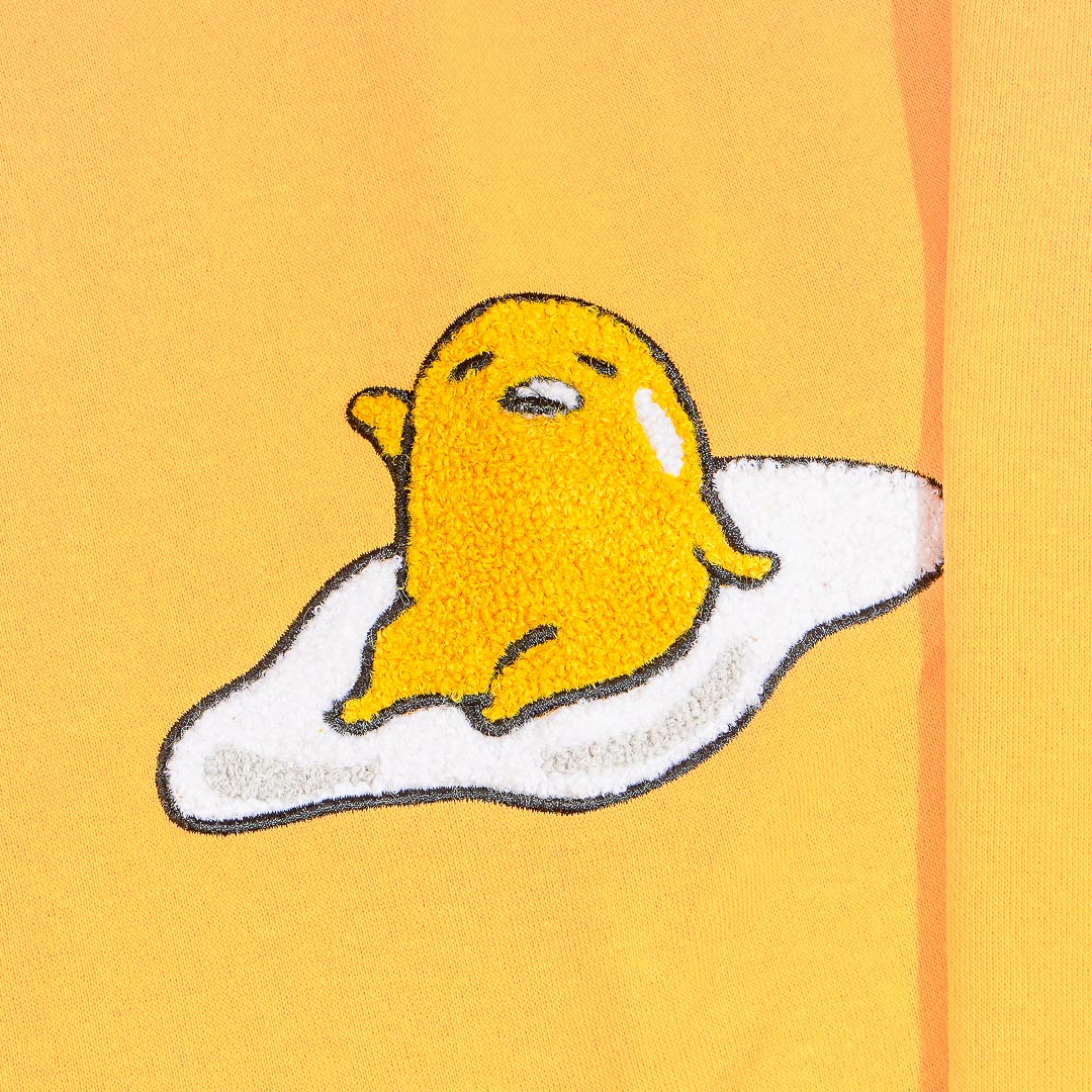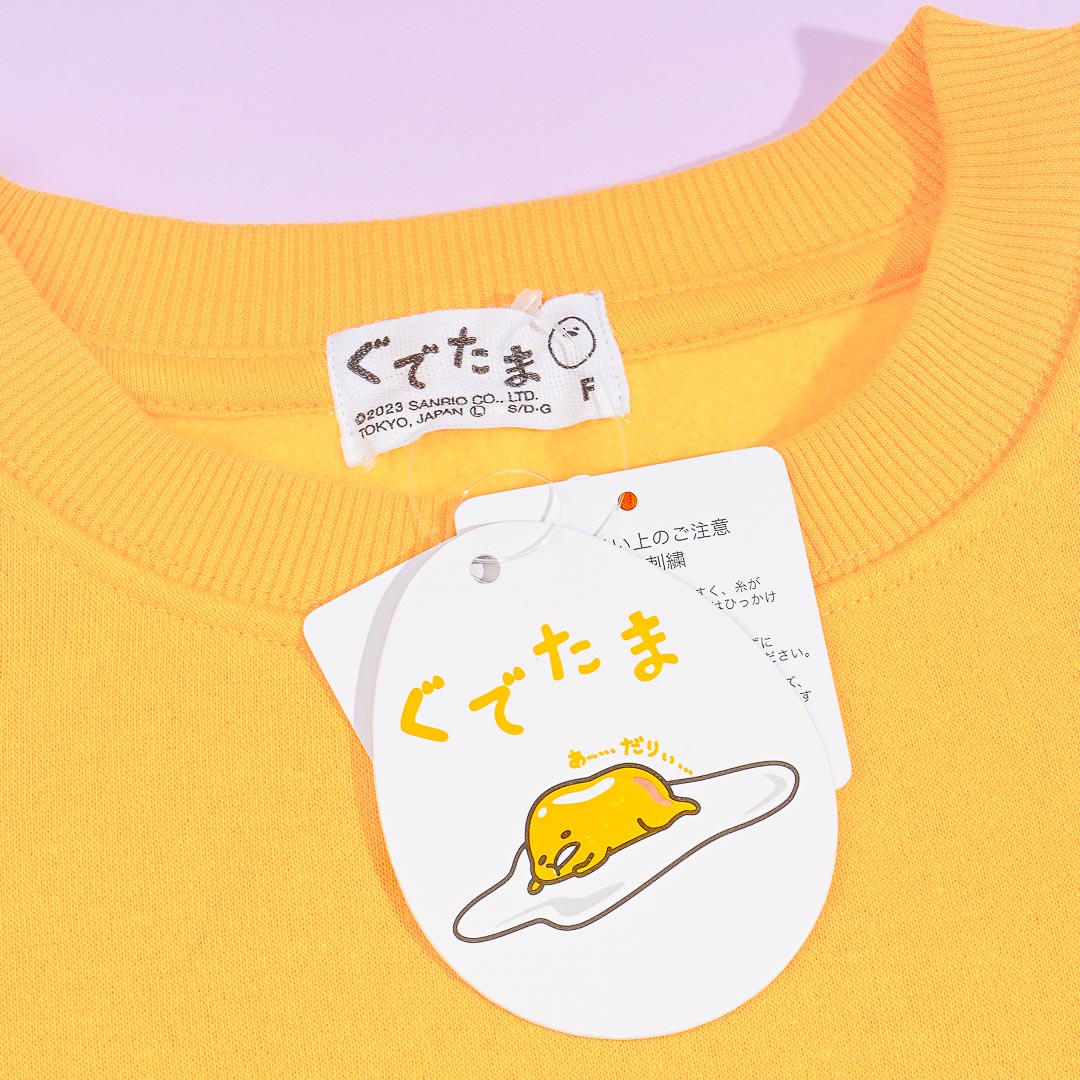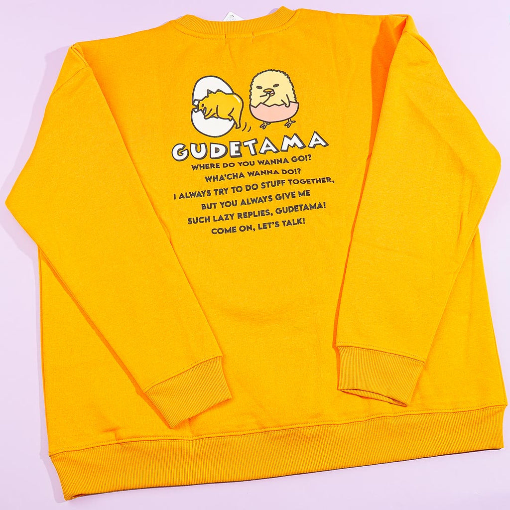 This super cute orange sweater has a kawaii embroidery of the lazy egg Gudetama on the front! The back has an illustration of Gudetama with one of his chick pals. Wear this bright sweatshirt to school or work whenever it’s cold!